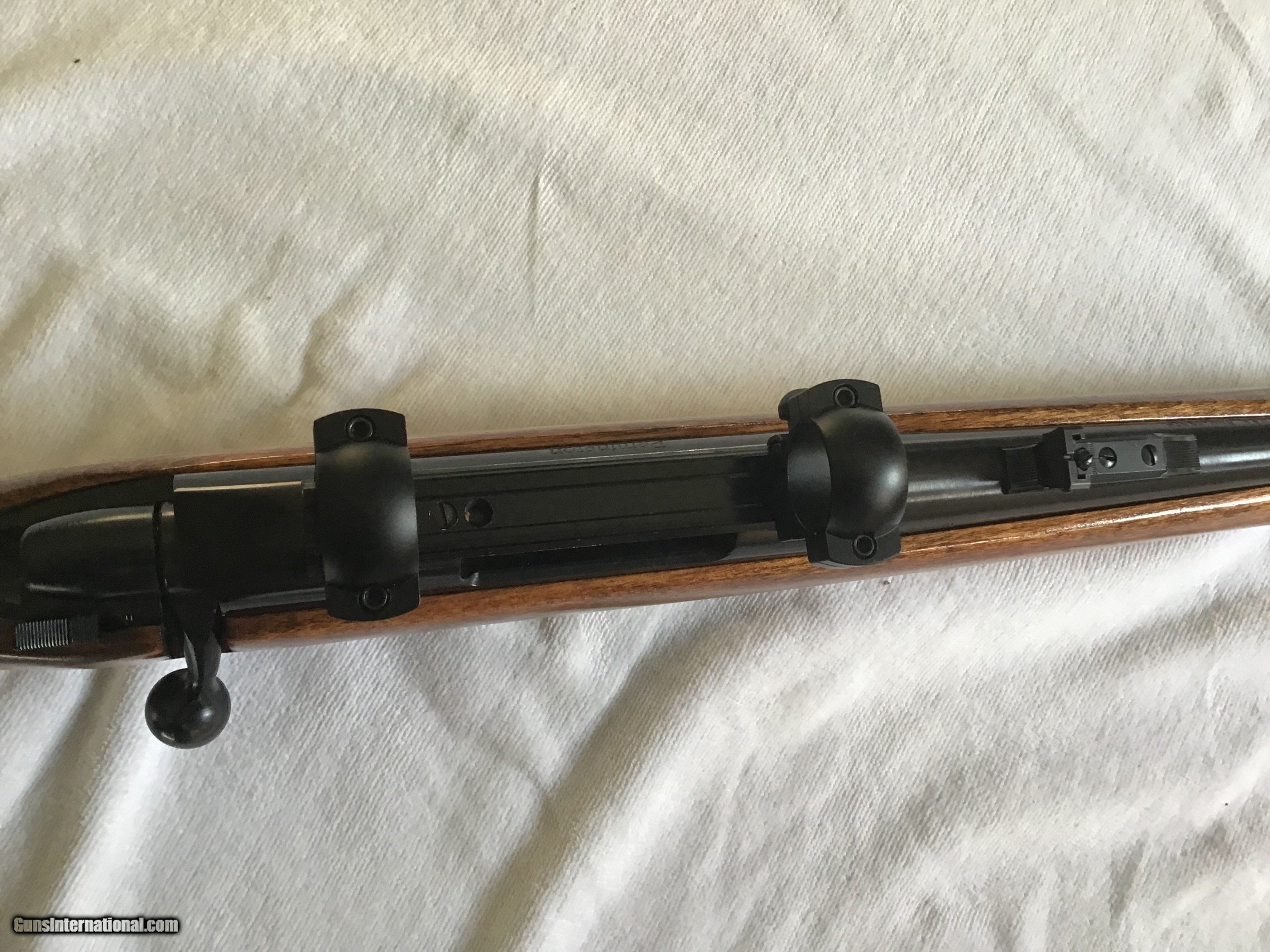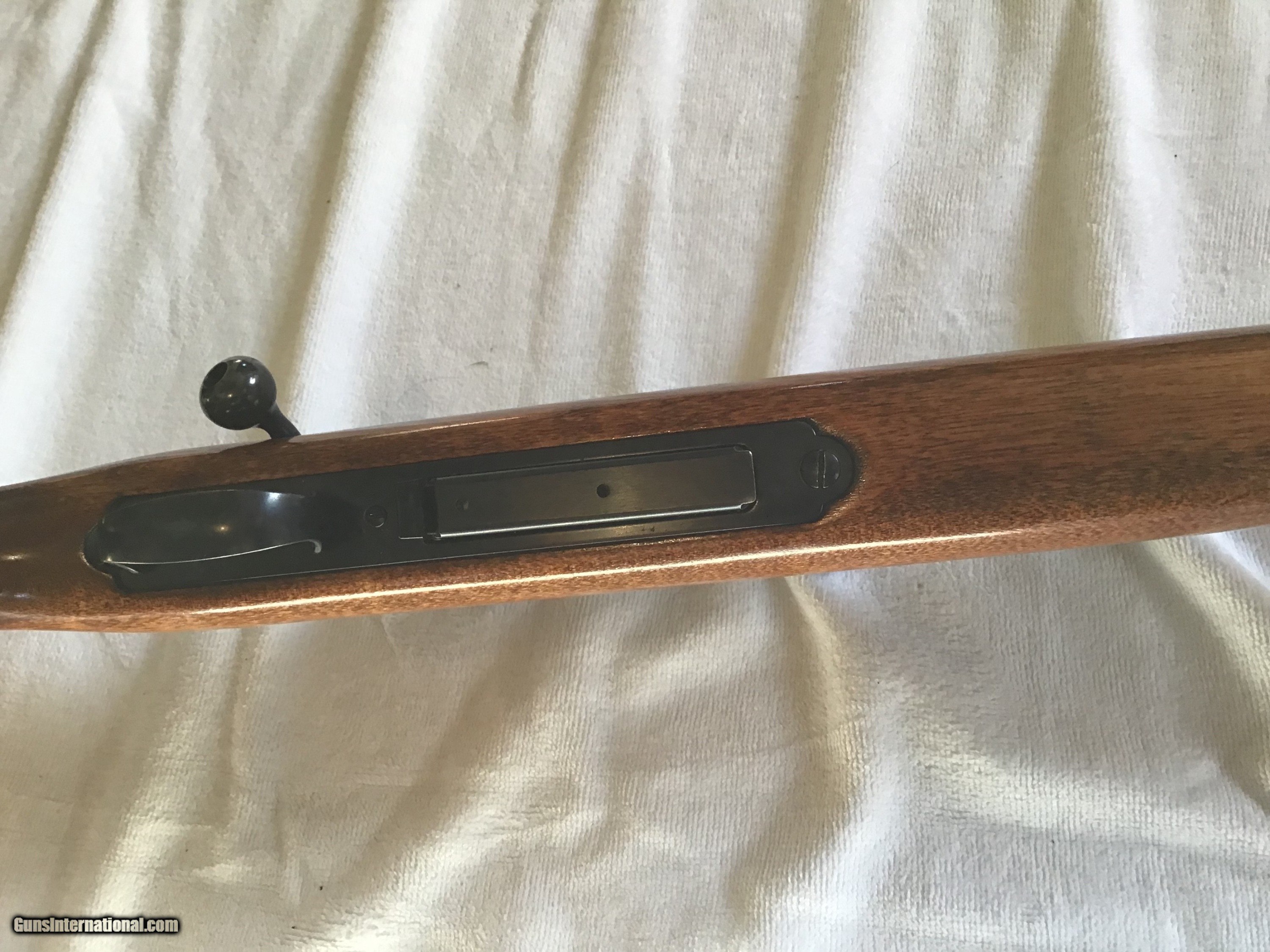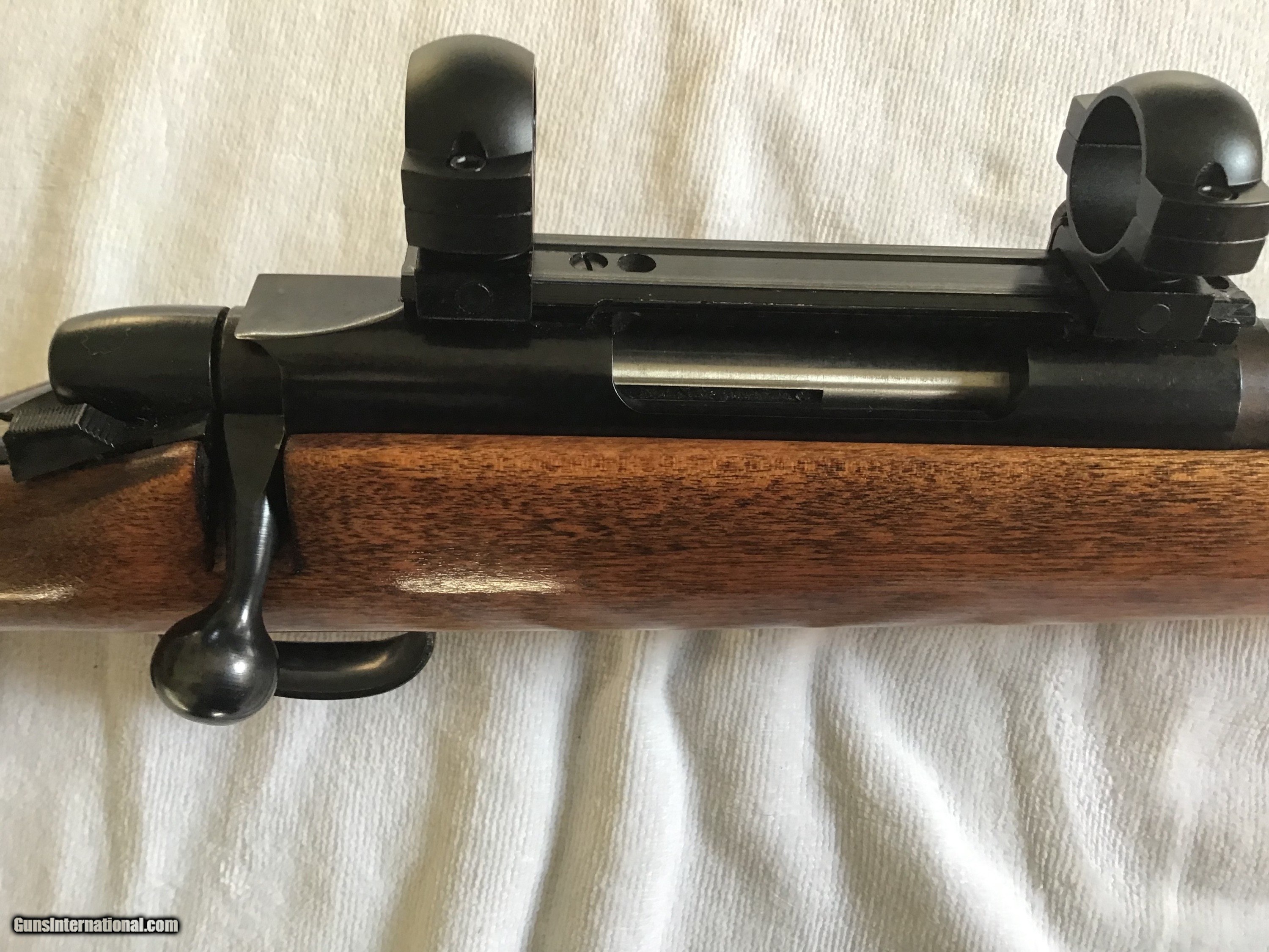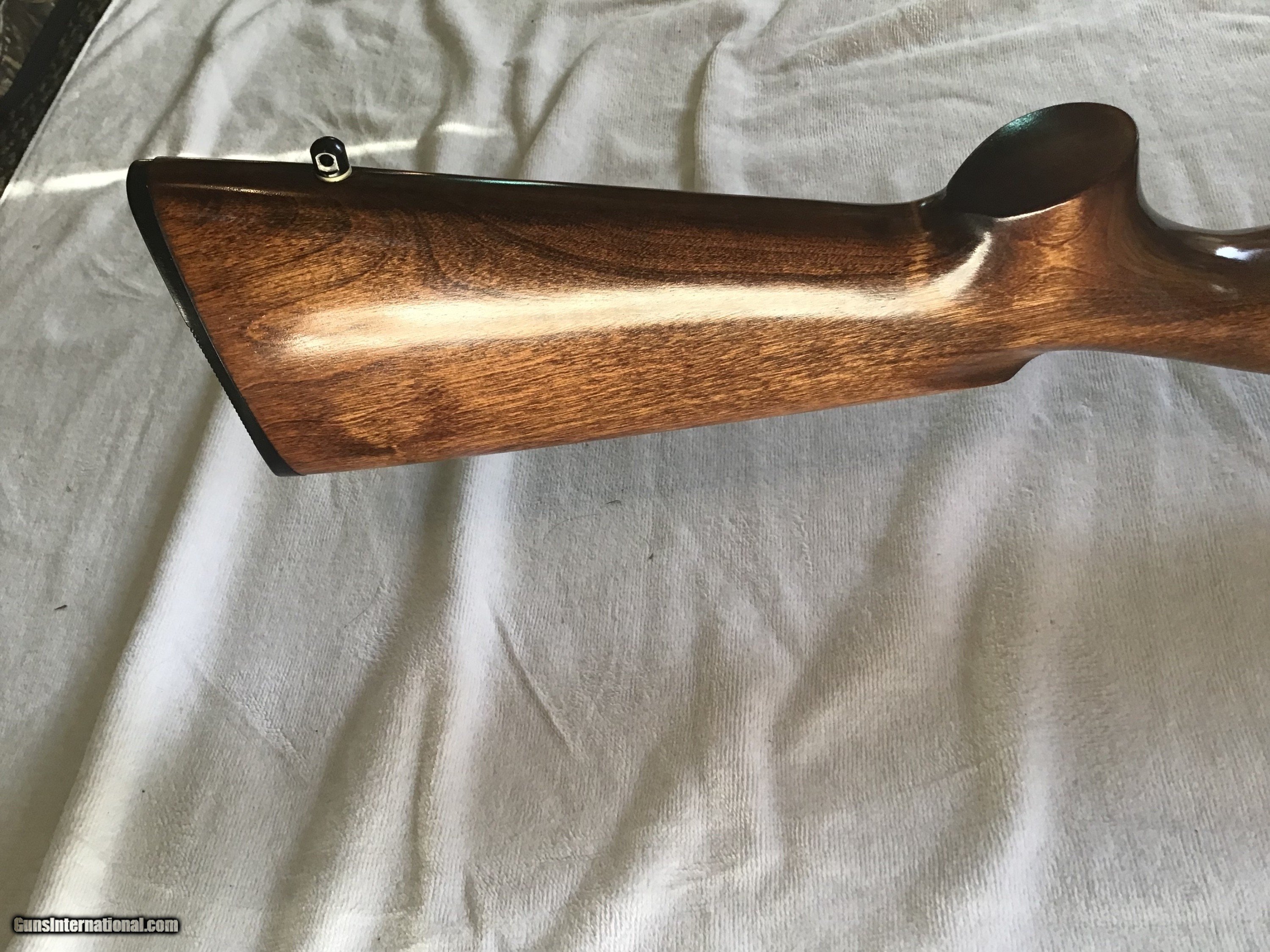 Description: It's been a long time since I have encountered one this nice. Recently acquired from an older gent who related to me that when he acquired it, he installed rings, base and scope, sighted it in, then put it away. Features are 18 1/2 in barrel, sling swivel studs, and miraculously retains the original factory sights which are often missing. Not liking the factory bland finish on stock, it was refinished and photos tell the story. Well known for their accuracy, coupled with the caliber of 7mm-08, 18 1/2 in carbine barrel, and its obvious condition make this one a gem. Buyer pays shipping. SOLD Rifle Caliber: 7mm-08 Remington |