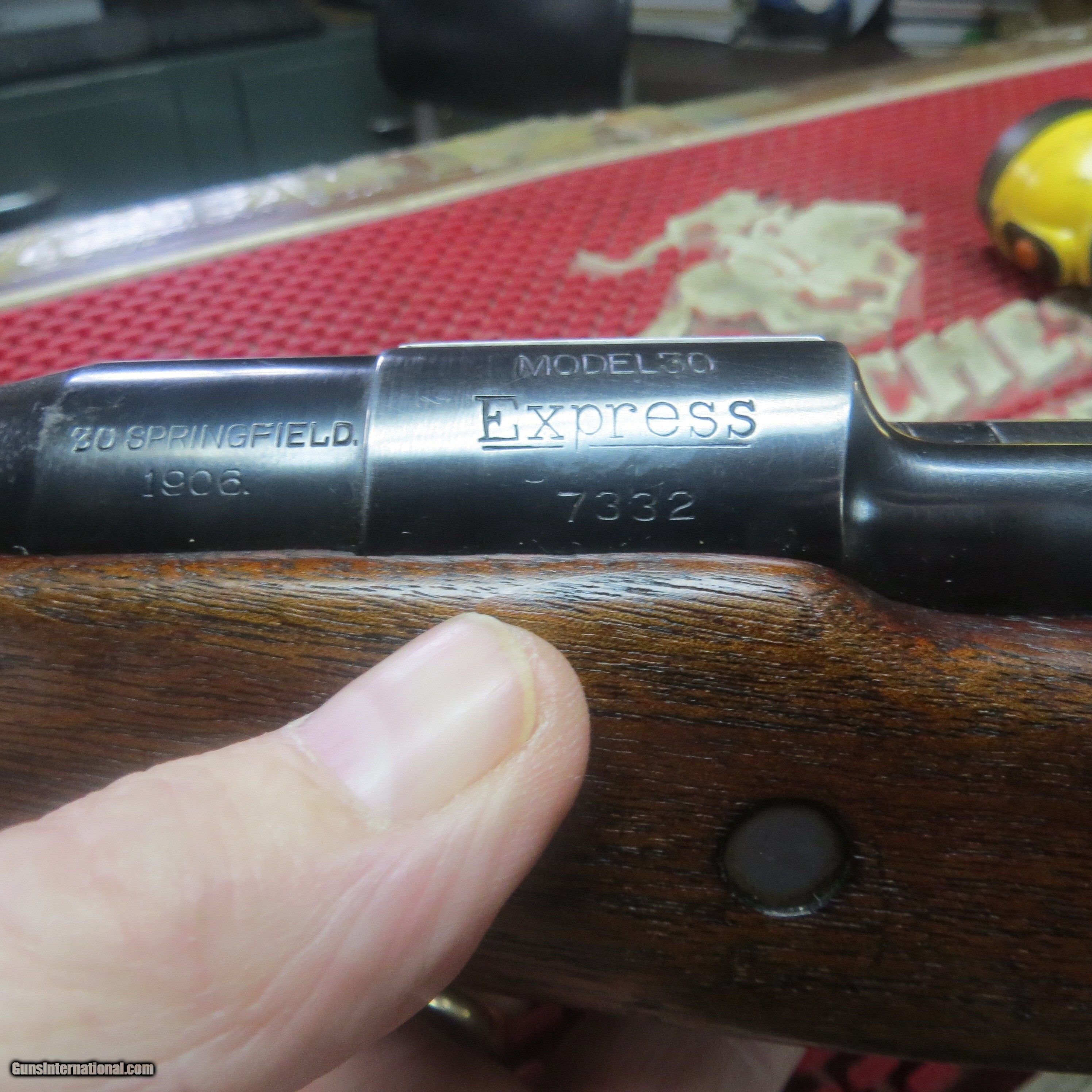 Description: From my personal collection Remingtom Model 30 Express 30-06 22" Threaded barrel very good bore wood is solid no cracks original finish , metal very good also so original super grade swivels Lyman 48 Receiver sight muzzle break , 950.00 + shipping No CA sales Rifle Caliber: .30-06 Springfield Manufacturer: Remington Model: 30 Serial Number: 7332 Barrel Length: 22 Condition: Very Good Metal Condition: Very Good Wood Condition: Very good Bore Condition: very good Price: $950.00 Contact Seller |