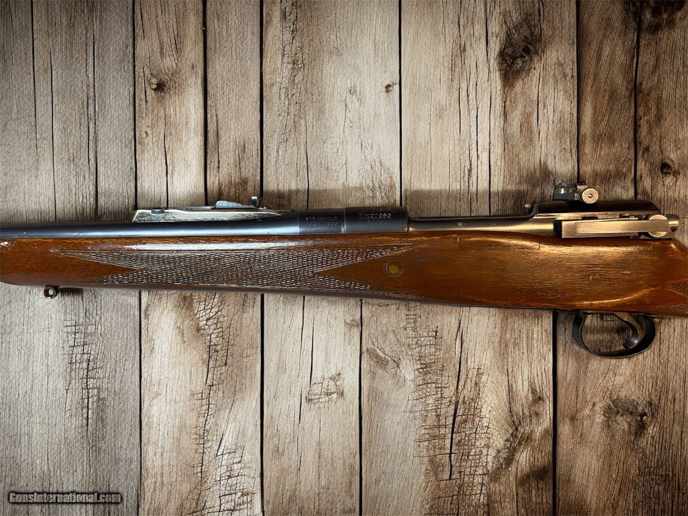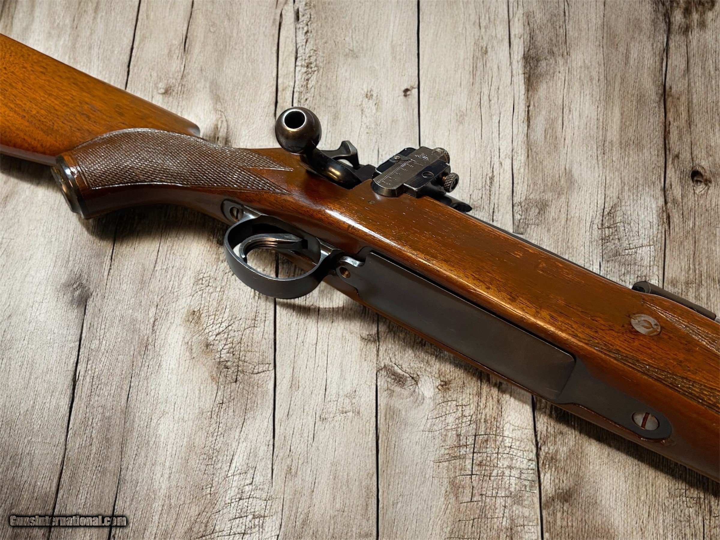 Description: The first high-powered bolt-action sporting rifle produced by Remington. During its first production run between 1921-1925, only 3,000 rifles were produced. Based on the military P14/M1917 Enfield rifle action, manufactured for the British and US governments during World War I; initial rifles used surplus military parts with some modifications. The action was a modified Mauser design with dual front locking lugs and a rear safety lug where the base of the bolt handle fitted into a recess in the receiver. The action was large, strong and robust, and therefore ideally suited to powerful sporting cartridges under development. The action used an internal box magazine and the Mauser-type claw extractor for controlled round feeding for excellent reliability. The barrel used on initial versions was of the same shape as the original military one, except it was polished and deep blued. The trigger mechanism was initially the same two-stage military type. Remington used the same steel and heat treatment as for the M1917 rifles, although improving the dimensional tolerances and the standard of finish. The actions were proof-tested to 70,000 psi (482.6 MPa) breech pressure. Rifle Caliber: .30 Remington Manufacturer: Remington Arms Model: Model 30S Serial Number: 23365 Condition: VG Wood Condition: Semi Gloss, VG, American Black Walnut Barrels: 1 Blue Steel Barrel Type: Rifled Action: Bolt-Action Fore End: American Black Walnut Finish: semi-gloss Manufacture Date: 1921 - 1925 Item Location: New Hudson MI Optic: NA Price: $1,499.00 Contact Seller |