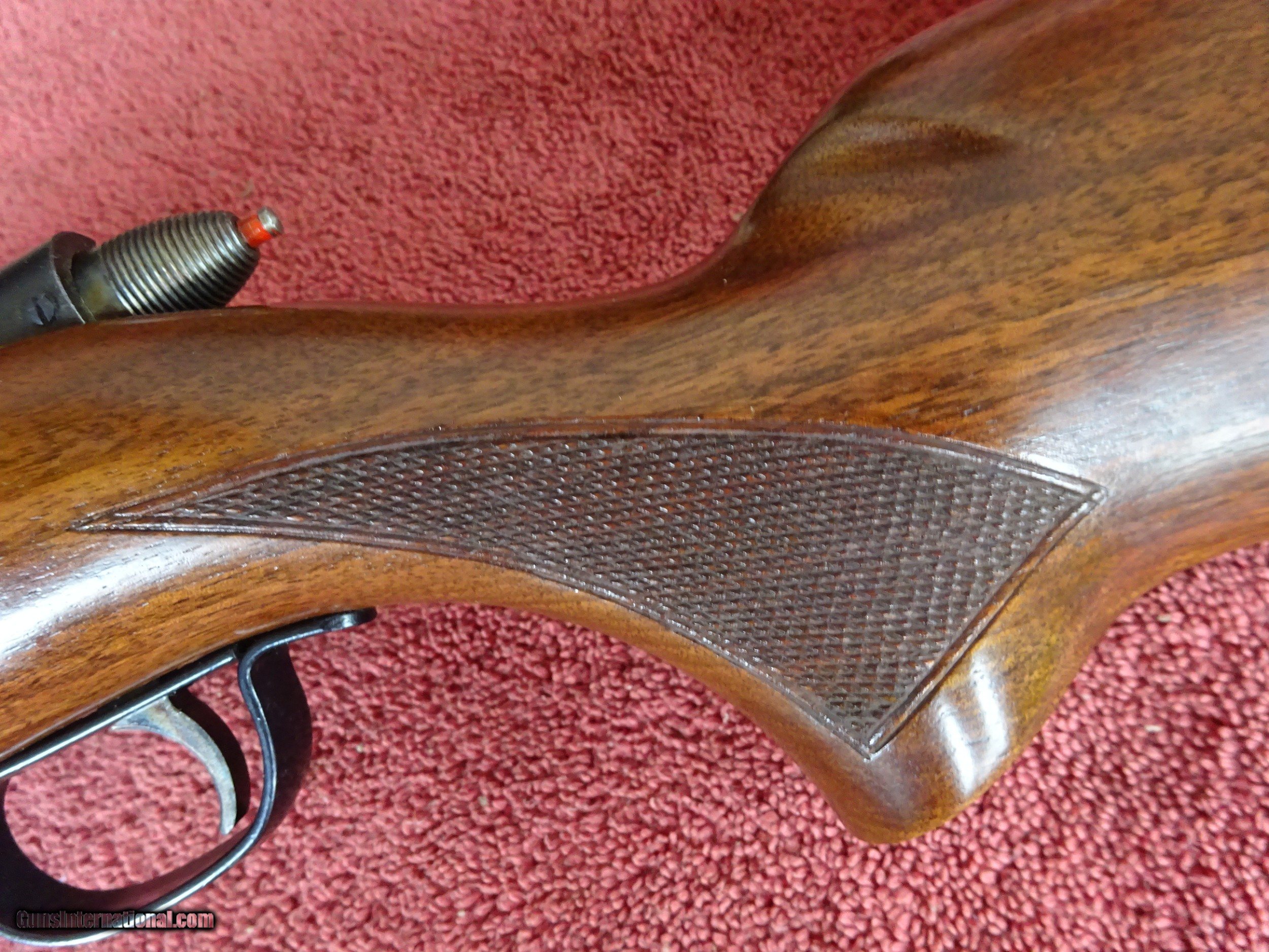 Description: SALE PENDING REMINGTON MODEL 513-S SPORTING RIFLE. 27" BARREL, RAMP FRONT SIGHT, STEP ADJUSTABLE REAR SIGHT, MIRROR PERFECT BORE, BARREL MARKED "THE MATCHMASTER MODEL 513-S 22 LONG RIFLE. SERIAL NUMBER STAMPED ON BOTTOM AHEAD OF FOREARM, 6 SHOT DETACHABLE MAGAZINE. PISTOL GRIP STOCK, BEAVERTAIL FOREARM, AMERICAN WALNUT, FINELY CHECKERED AT BOTH GRIP AND FOREND. SLING SWIVELS, CHECKERED STEEL BUTTPLATE. OVERALL CONDITION IS NEAR PERFECT - 99% BRIGHT BLUE, NO HANDLING MARKS IN THE VARNISH OR CHECKERING. MADE 1939-1957, TOTAL PRODUCTION ONLY 13,680. $1575.00 + $50.00 Insured shipping to an FFL address. See all Pats gun listings on this site! We also have hundreds of pieces of ORIGINAL gun company advertising & memorabilia available for sale on our site SPORTINGCOLLECTIBLES. We have no reprints or reproductions. Email for more information. SOLD Curio/Relic: Yes |