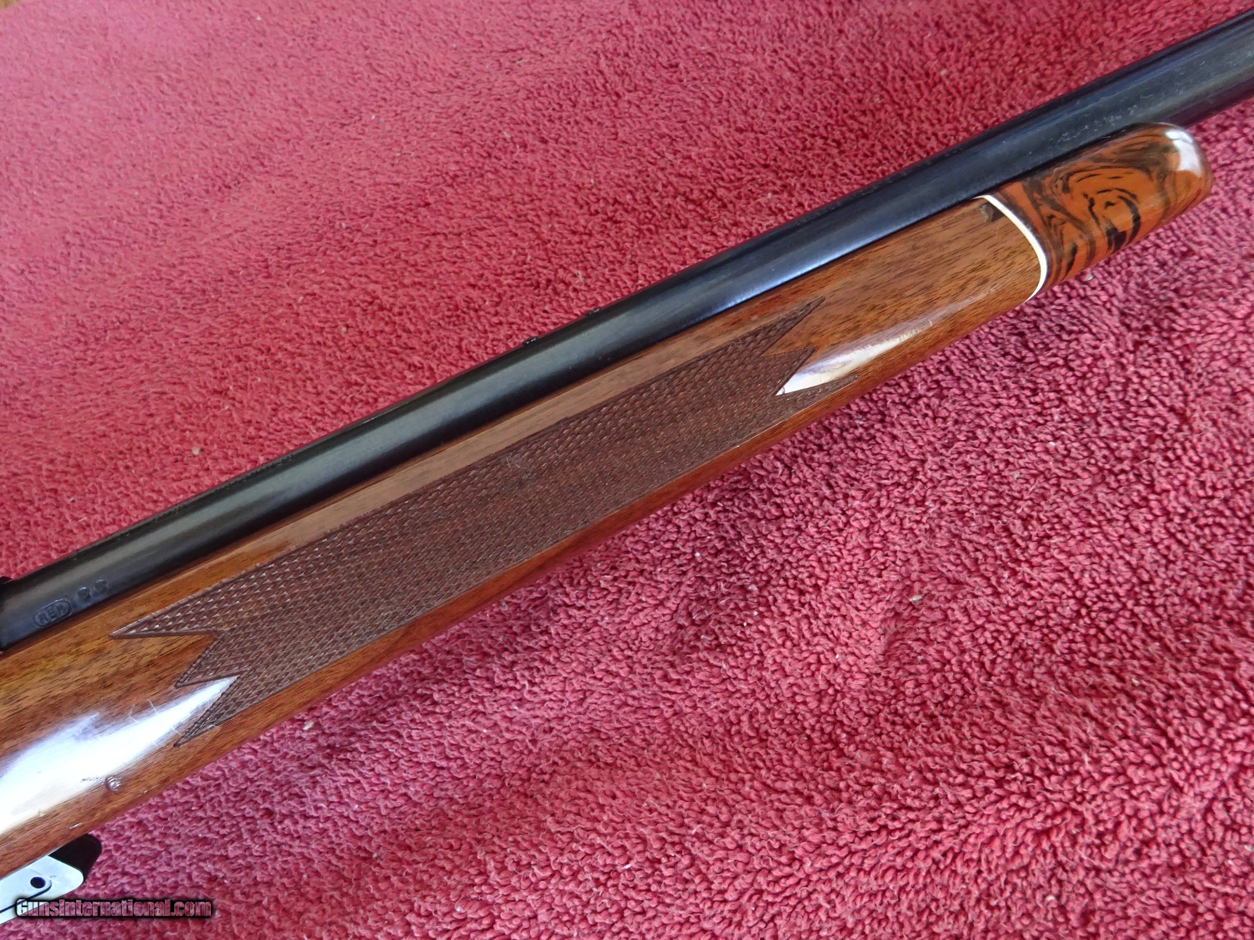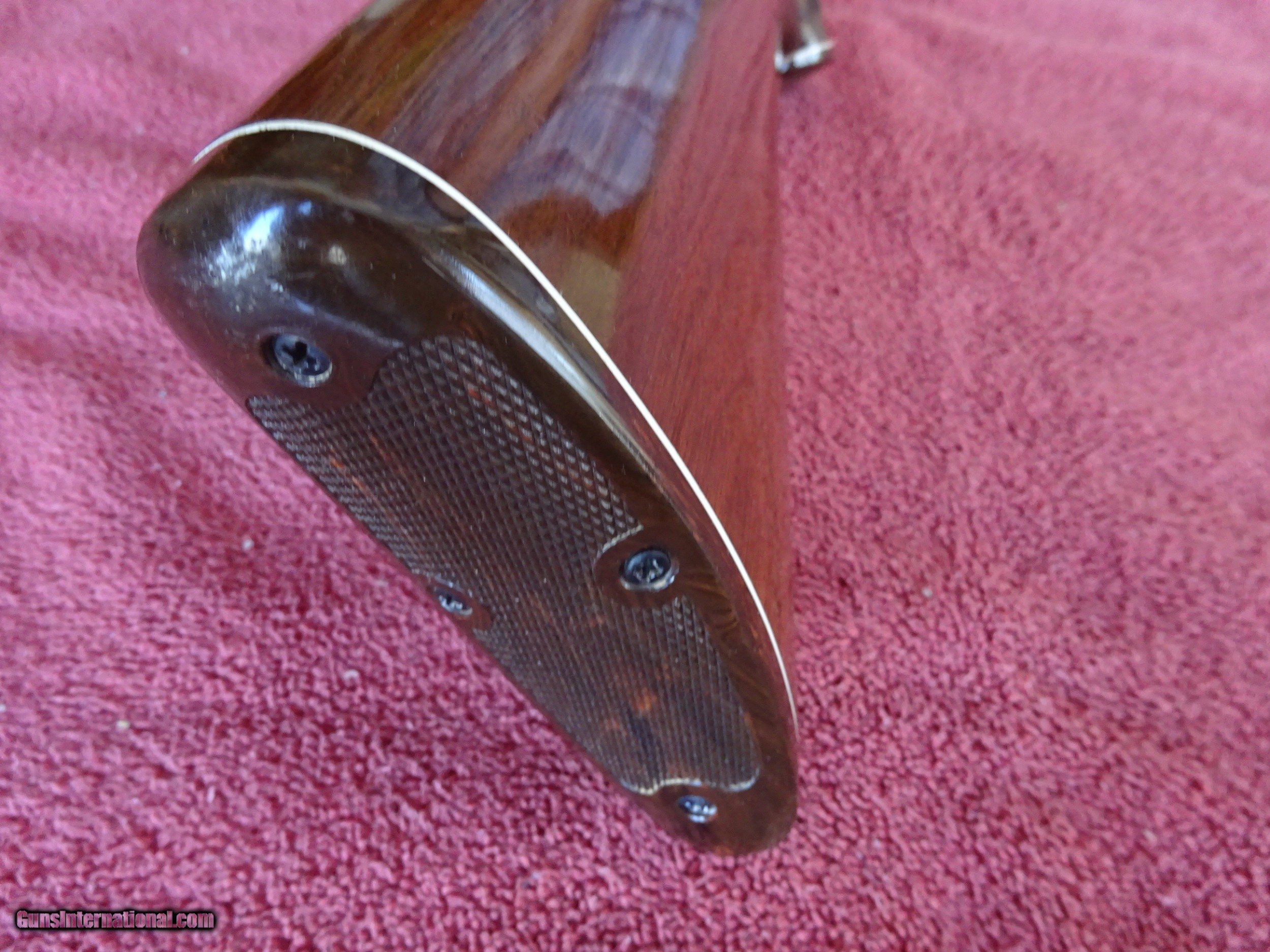 Description: REMINGTON MODEL 541-S CUSTOM SPORTER, 22 SHORT, LONG OR LONG RIFLE. 99% BLUE, MIRROR PERFECT BORE. SCROLL ENGRAVED RECEIVER AND TRIGGER GUARD, 5 SHOT CLIP. ATTRACTIVE WOOD WITH FAUX ROSEWOOD FOREARM TIP, GRIP CAP AND BUTTPLATE. CHECKERED PISTOL GRIP AND FOREND. FACTORY DRILLED AND TAPPED TO ACCOMMODATE A WIDE VARIETY OF SIGHTS. VERY NICE QUALITY SPORTING RIFLE MADE 1972 TO 1983. 0NLY 31,000 PRODUCED. NICE GUN WITH NORMAL HANDLING MARKS ON THE VARNISH. $1275.00 + $50.00 Insured shipping to an FFL address. See all Pats gun listings on this site! We also have hundreds of pieces of ORIGINAL gun company advertising & memorabilia available for sale on our site SPORTINGCOLLECTIBLES. We have no reprints or reproductions. Email for more information. SOLD |