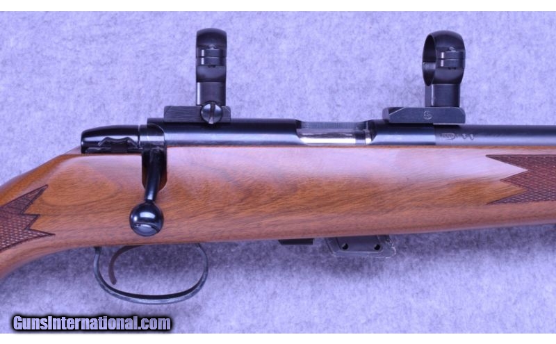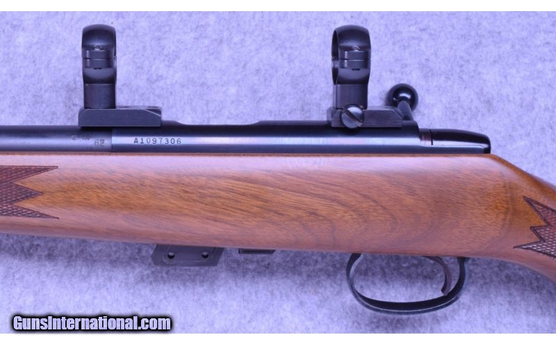 Description: Excellent throughout showing little use. Complete with box. SOLD Manufacturer: S/N A109XXXX Caliber Info: .22 LR Metal Condition: Excellent Wood Condition: Excellent Bore Condition: Excellent Barrels: 24 Triggers: Factory Stock: Checkered Walnut Pistol Grip with Black Cap Stock Dimensions: 13 1/4" LOP Fore End: Checkered Walnut Butt Pad: Black Plastic Weight: 7 LB Sights: None - Rings & Mounts Included Item Location: Wheeling, WV |
