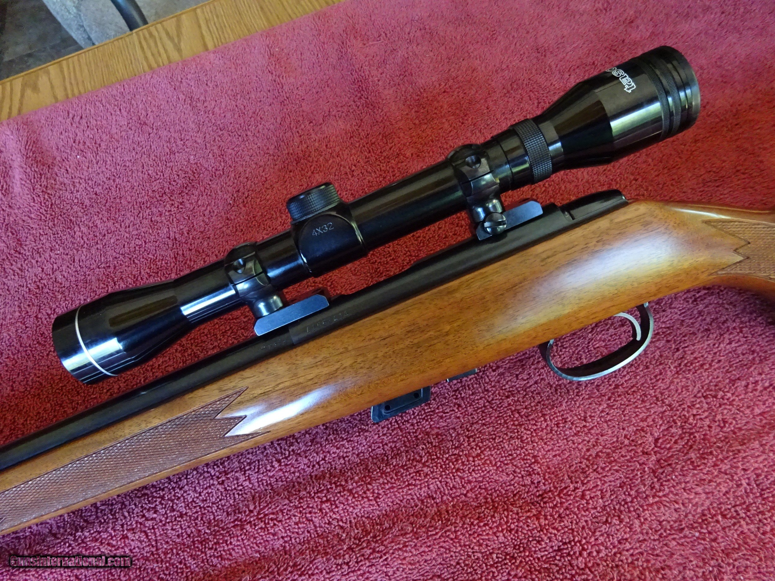 Description: SALE PENDING REMINGTON MODEL 541-T, STANDARD PENCIL BARREL TARGET, 22 SHORT, LONG OR LONG RIFLE, 24" ROUND TAPERED BARREL. FACTORY DRILLED AND TAPPED FOR SCOPE MOUNTING, NO FIXED SIGHTS. AMERICAN WALNUT STOCK, CHECKERED PISTOL GRIP AND FOREND. BLACK PLASTIC GRIP CAP, FOREND TIP AND BUTTPLATE. 5 SHOT CLIP MAGAZINE, SLING STUDS, TASCO 4 X 32 SCOPE. NEW CONDITION, PERFECT FINISH, NO SIGN OF ANY USE. INTRODUCED IN 1984, DISCONTINUED IN 1999. 100% ORIGINAL CONDITION. $1375.00 + $60.00 Insured shipping to an FFL address. Layaway is available. See all Pats gun listings on this site! We also have hundreds of pieces of ORIGINAL gun company advertising & memorabilia available for sale on our site SPORTINGCOLLECTIBLES. We have no reprints or reproductions. Email for more information. SOLD |