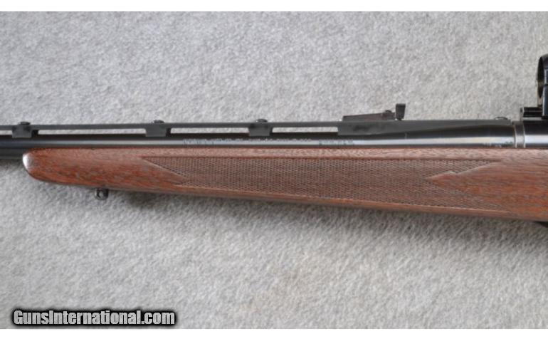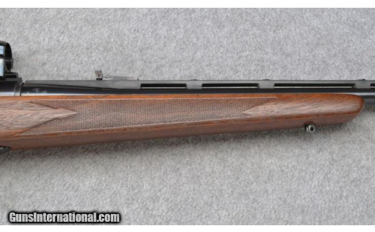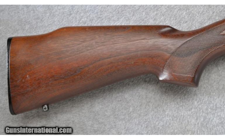 Description: Wood has been refinished. Blue and bore remain excellent. Complete with scope mount and rings. SOLD Manufacturer: S/N 31XXX Caliber Info: 6 MM Rem. Metal Condition: Excellent Wood Condition: Good-Refinished Bore Condition: Excellent Barrels: 18 1/2 Triggers: Original Stock: Checkered Walnut Pistol Grip Stock Dimensions: 13 7/8" LOP Fore End: Checkered Walnut Butt Pad: Black Plastic Butt Plate Weight: 6 1/4 LB Sights: Bead Front-Adjustable Notch Rear-Scope Base & Rings Item Location: Wheeling, WV |