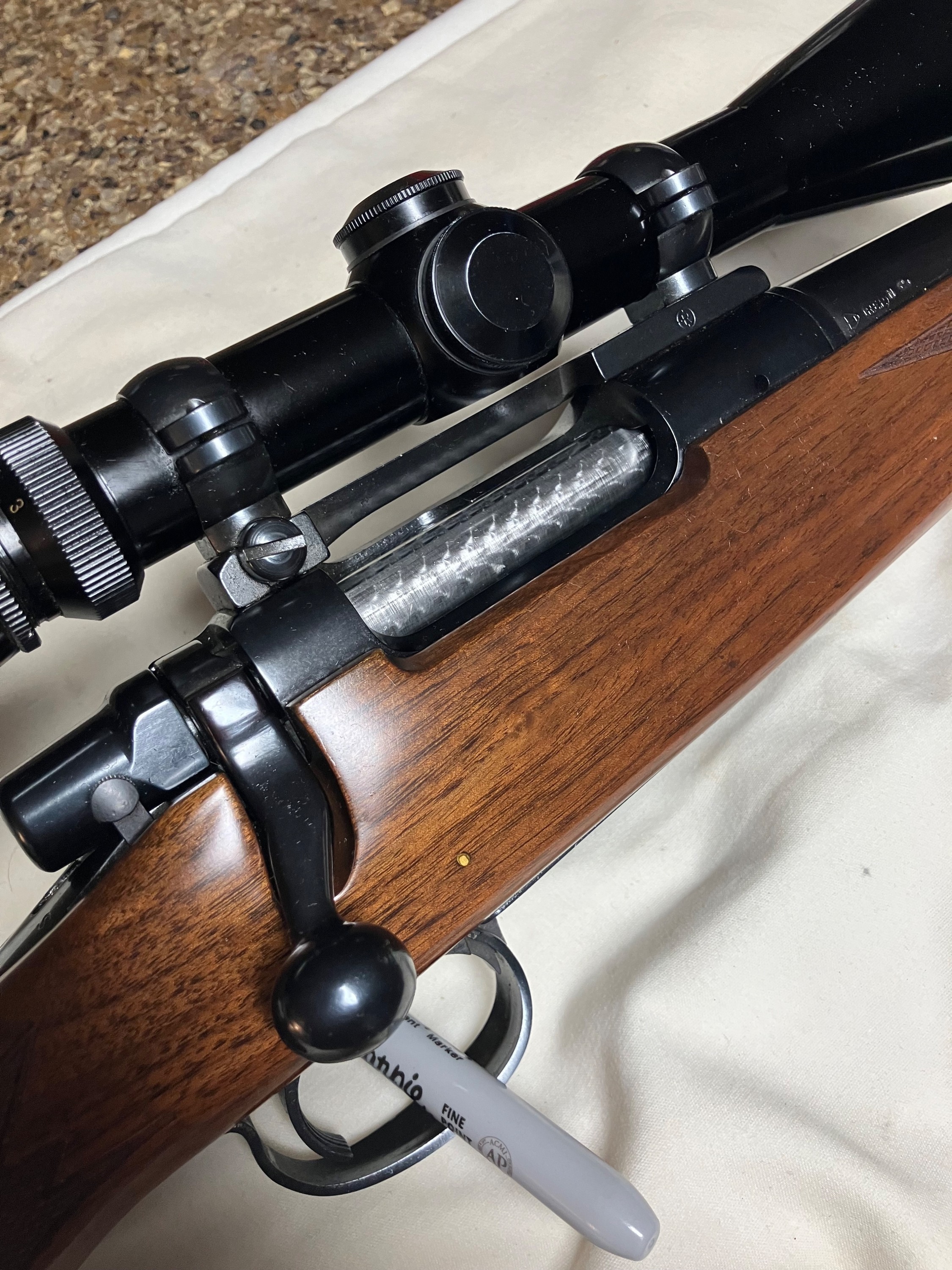 Description: Remington model 7 in .223, excellent shape, very few minor handling marks on wood and none on bluing. Fired very little, its a early round bolt knob rifle with besutiful wood. A hard to find early sought after Remington model. Scope not included just bases and rings. Rifle Caliber: .223 Remington Manufacturer: Remington Model: Model 7 Bore Info: Exc Condition: Exc Metal Condition: Exc Wood Condition: Exc Bore Condition: Exc Action: Bolt Stock: Walnut Butt Pad: Rubber factory Sights: Bases rings Price: $1,300.00 Shipping: $60.00 Buy Now Contact Seller |