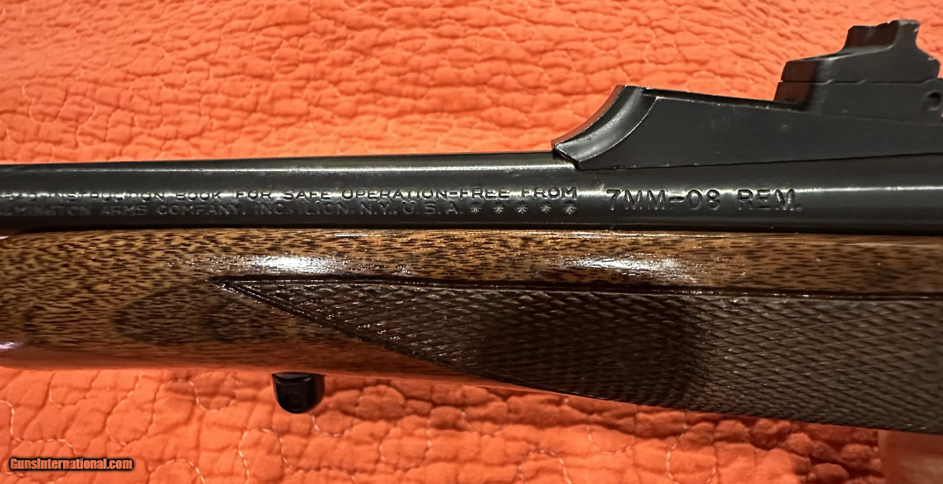 Description: FOR SALE IS A VERY SOUGHT AFTER - INCREDIBLE CONDITION REMINGTON MODEL 7 RIFLE IN 7MM-08 CALIBER WITH AN ABSOLUTE BREATHTAKING WALNUT STOCK GRAIN PATTERN. REMINGTON MODEL 7 RIFLES ARE NOT A COMMON RIFLE AND ESPECIALLY IN THIS CONDITION AND QUALITY, IN THE HIGHLY SOUGHT AFTER 7MM-08 CALIBER. THESE ARE EXTREMELY HARD TO FIND. THIS RIFLE WAS MADE IN THE COVETED ILION, NEW YORK REMINGTON FACTORY, WHICH CLOSED IN 2024 AFTER OVER 200 YEARS OF PRODUCTION- MAKING THIS RIFLE COLLECTABLE ALREADY. THE RIFLE BEARS ALL OF THE CORRECT BARREL STAMPS INCLUDING THE PROOF/INSPECTION STAMP. IT IS HARD TO FIND ANY FLAWS AT ALL ON THIS RIFLE, ASIDE FROM SOME FAINT HANDLING MARKS ON THE BARREL - BUT THE STOCK IS FLAWLESS AND THE FACTORY MILLED RECEIVER SCOPE HOLES EVEN STILL HAVE THE PLUG SCREWS IN THEM. THIS WILL NOT LAST LONG!!!!! $1800.00 CALL OR TEXT JOHN WITH ANY QUESTIONS (941)626-8912. EMAIL - HOBIECATJYAHOO CONDITION:
