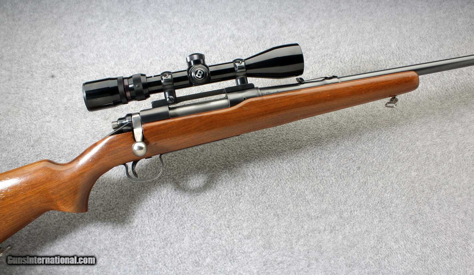 Description: The Remington Model 721, considered to be one of the first modern, economically produced sporting rifles whose design largely continued with the subsequent and highly successful Model 700. Manufactured with high precision, it is known for exceptional accuracy. The bolt and receiver design, based on the Mauser action, is considered one of the strongest ever produced. Manufactured 1951. .270 Winchester SOLD Metal Condition: Very good with some finish wear on the sharp edges Wood Condition: Good with some scratches and dents Bore Condition: "Very good, sharp and bright Barrels: 24 inch barrel Stock Dimensions: 13 3/8 inch LOP Butt Pad: Remington checkered metal plate Weight: 8 Lbs. 4 Oz. Sights: "Bushnell Trophy 3-9x scope, bead front with rear sight missing elevator Item Location: Lehi, UT |