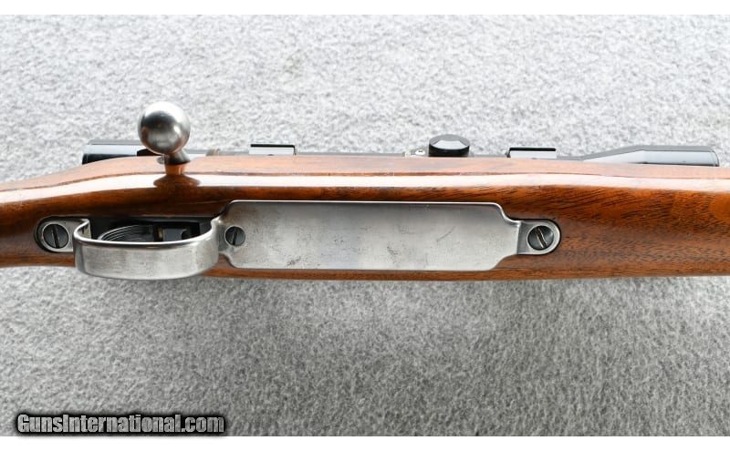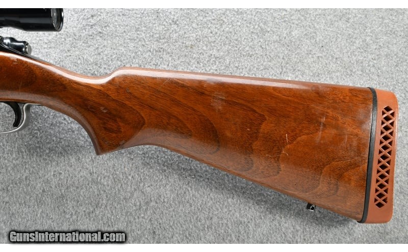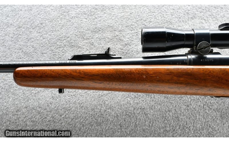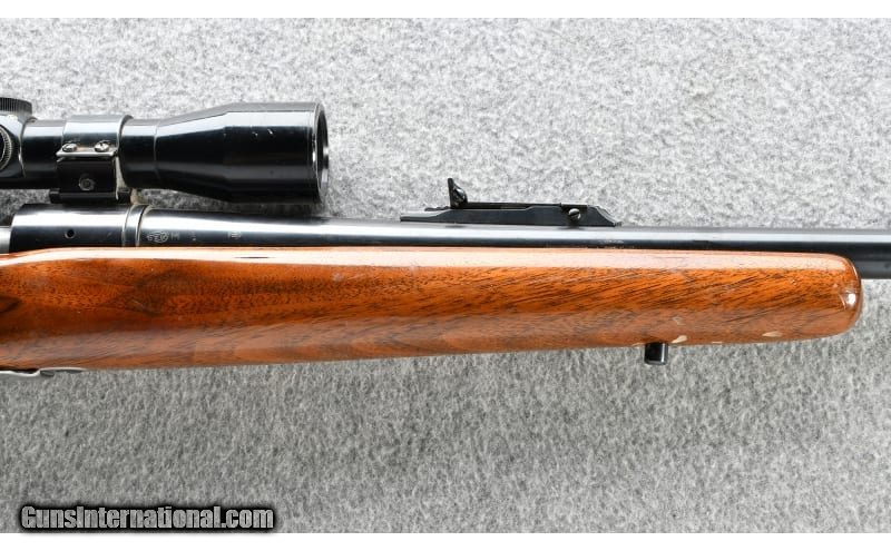 Description: The Remington Model 721 was Post War bolt action rifle. Solid, reliable with a strong action. This one was made in 1953 .30-06 Springfield SOLD Chambers: .30-06 Springfield in a five round box magazine bolt action rifle Metal Condition: "Good, shows light to moderate blue wear, mostly at the trigger guard and floor plate Wood Condition: "Good, older refinish with subsequent field marks Bore Condition: "Good, clean bore with good rifling Barrels: 22 Stock Dimensions: 14" LOP Fore End: Plain walnut with sling stud Butt Pad: WFS vented recoil pad Weight: 8 Lbs. 2 Oz. Sights: "Ramped blade front, adjustable leaf rear, fitted with a Bushnell Banner 4x scope Item Location: Grand Junction, CO |