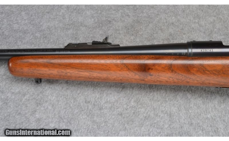 Description: Stock has been fitted with sling swivel studs. Remains excellent throughout. No box. SOLD Manufacturer: S/N 429XXX Caliber Info: .30-06 Metal Condition: Excellent Wood Condition: Excellent Bore Condition: Excellent Barrels: 22 Triggers: Factory Stock: Uncheckered Walnut Pistol Grip Stock Dimensions: 13 3/8" LOP Fore End: Uncheckered Walnut Butt Pad: Checkered Aluminum Weight: 7 LB Sights: Bead Front - Adjustable Notch Rear Item Location: Wheeling, WV |