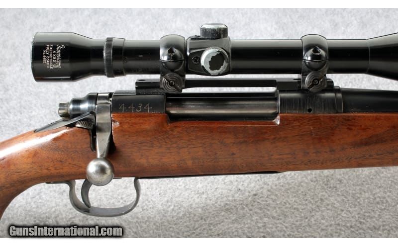 Description: The Remington Model 721 is considered one of the first modern, economically produced sporting rifles whose design largely continued with the subsequent and highly successful Model 700. Manufactured with high precision, it is known for exceptional accuracy. The bolt and receiver design, based on the Mauser action, is considered one of the strongest ever produced. .30-06 Springfield SOLD Metal Condition: Good with scratches and some finish wear and numbers engraved on action Wood Condition: Aftermarket stock in good condition with dents and scratches Bore Condition: "Very good, sharp and bright Barrels: 24 inch barrel Stock Dimensions: 13 1/4 inch LOP Butt Pad: Pachmayr pad Weight: 8 Lbs. 4 Oz. Sights: Monoscope 4X32 scope Item Location: Lehi, UT |