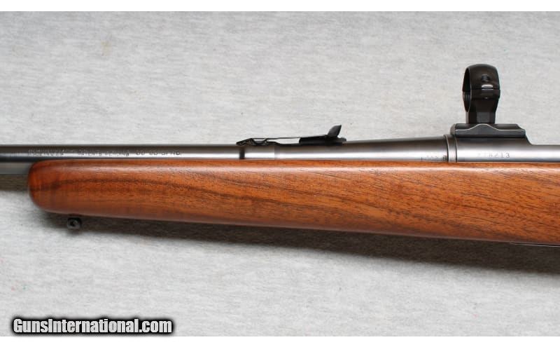 Description: Excellent condition, light finish wear, few small scratches. .30-06 Caliber bolt action rifle, 24" barrel, blued metal, smooth bolt action, factory iron sights and 1" scope rings installed. Natural finish hardwood stock with sling swivel mounts and factory checkered metal butt plate. .30-06 Springfield SOLD Chambers: Bolt action Metal Condition: Excellent Wood Condition: Excellent Barrels: 24 Triggers: Factory Stock Dimensions: 13" LOP Fore End: Smooth Butt Pad: Metal butt plate Sights: Irons sights and 1" scope rings Item Location: La Vista, NE |