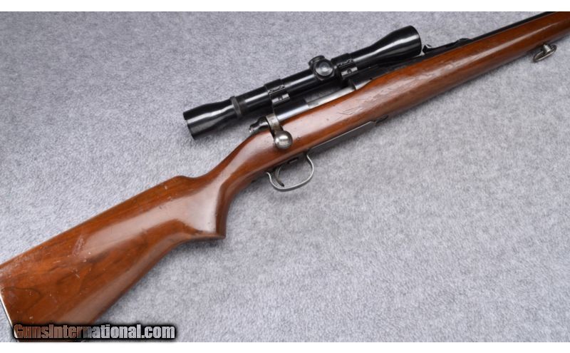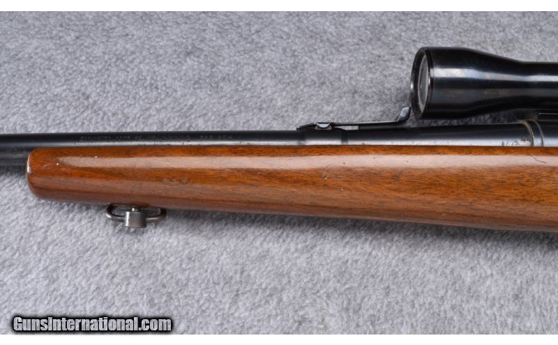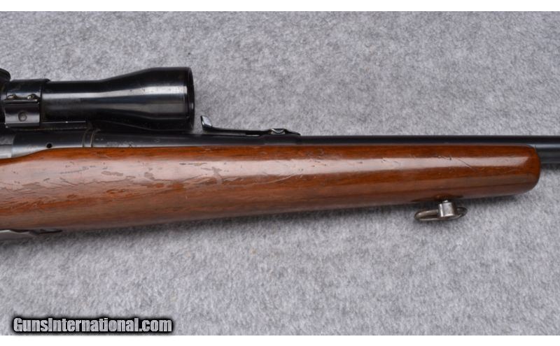 Description: Wood shows hunting wear and remains free of cracks. Blue has a few areas of light old pitting. Bore remains bright and excellent. Floorplate shows carry wear. Complete with period Weaver K4 optic. SOLD Manufacturer: S/N 339XXX Caliber Info: .222 Rem. Metal Condition: Very Good Wood Condition: Good Bore Condition: Excellent Barrels: 26 Triggers: Original Stock: Uncheckered Walnut Pistol Grip Stock Dimensions: 13 3/8" LOP Fore End: Uncheckered Walnut Butt Pad: Serrated Aluminum Weight: 8 1/2 LB Sights: Bead Front - Adjustable Notch Rear - Weaver K4 Optiic Item Location: Wheeling, WV |