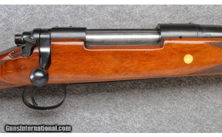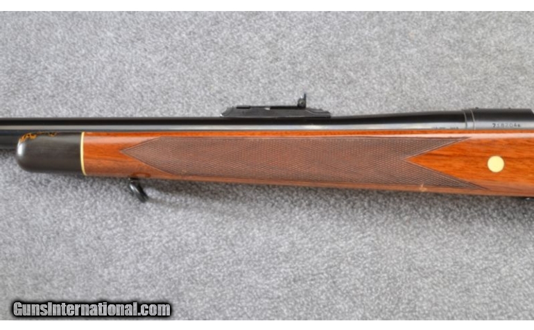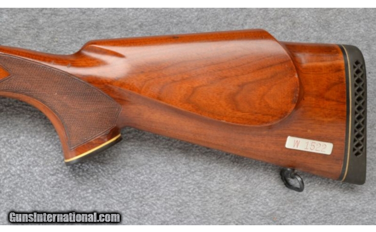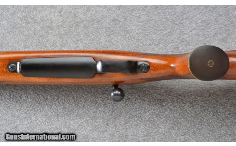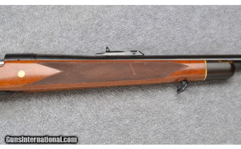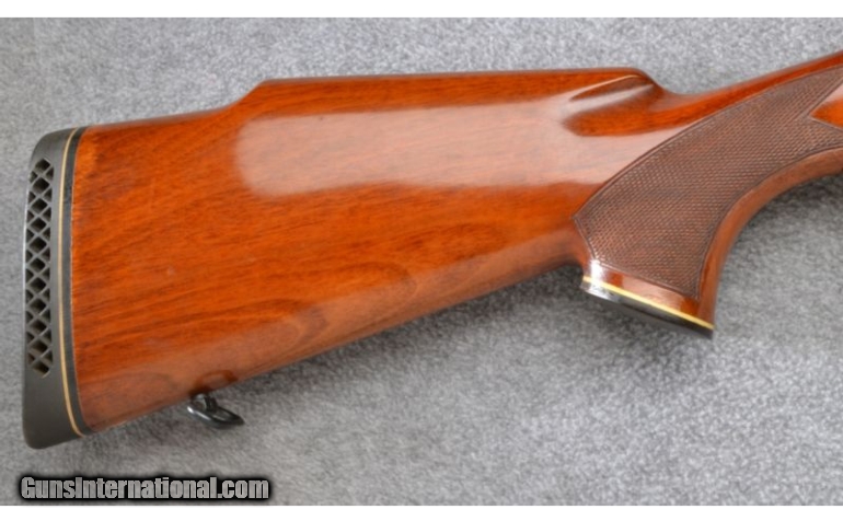 Description: Blue and bore are excellent. Wood shows some use marks with some flaking on the forend cap. Buttstock has a number plate on left side. No box. SOLD Manufacturer: S/N 718ZXX Caliber Info: .458 Win. Mag. Metal Condition: Excellent Wood Condition: Very Good Bore Condition: Excellent Barrels: 26" with Integral Brake Triggers: Factory Stock: Checkered Walnut Pistol Grip with Black Cap Stock Dimensions: 14" LOP Fore End: Checkered Walnut with Black Cap Butt Pad: Black Vented Rubber Butt pad Weight: 9 1/2 LB Sights: Bead Front-Adjustable Notch Rear Item Location: Wheeling, WV |