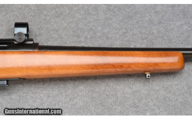 Description: Wood shows a few light use/storage marks with excellent blue and bore. Complete with rings and bases. No box. SOLD Manufacturer: S/N A615XXXX Caliber Info: .22-250 Rem. Metal Condition: Excellent Wood Condition: Very Good Bore Condition: Excellent Barrels: 24 Triggers: Factory Stock: Uncheckered Hardwood Pistol Grip Stock Dimensions: 13 5/8" LOP Fore End: Uncheckered Hardwood Butt Pad: Black Plastic Weight: 8 1/4 LB Sights: Blade Front - Rear Sight Removed - Rings & Bases Included Item Location: Wheeling, WV |