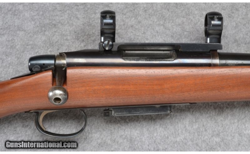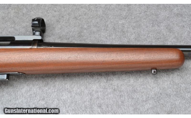 Description: Barrel shows a couple areas of thinning blue with an excellent bore. Wood shows a few light use storage marks and the forend opened a bit to free float the barrel. Wood may have been lightly refinished at some point. No box. SOLD Manufacturer: S/N 051XXX Caliber Info: .22-250 Rem. Metal Condition: Good Wood Condition: Very Good Bore Condition: Excellent Barrels: 24 Triggers: Factory Stock: Uncheckered Walnut Pistol Grip Stock Dimensions: 13 3/4" LOP Fore End: Uncheckered Walnut Butt Pad: Black Plastic Weight: 7 3/4 LB Sights: None- Rings & Mounts Included Item Location: Wheeling, WV |