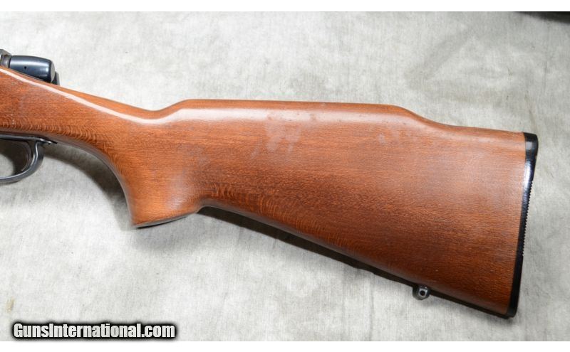 Description: Features include rear locking lugs. SOLD Caliber Info: 6MM Remington. Chambers: 4 round detachable magazine. Metal Condition: Very good. Wood Condition: Very good. Bore Condition: A little dark but shiny. Good rifling. Barrels: 21 inch blue. Triggers: Factory trigger. Stock: Hardwood with pistol grip. Stock Dimensions: 13 - 1/2 Inch LOP. Butt Pad: Black plate. Weight: 6 lb. - 14 oz. Sights: Drilled and tapped for your choice of optical or open sights. Extras: One magazine. Item Location: Rogers,, MN |