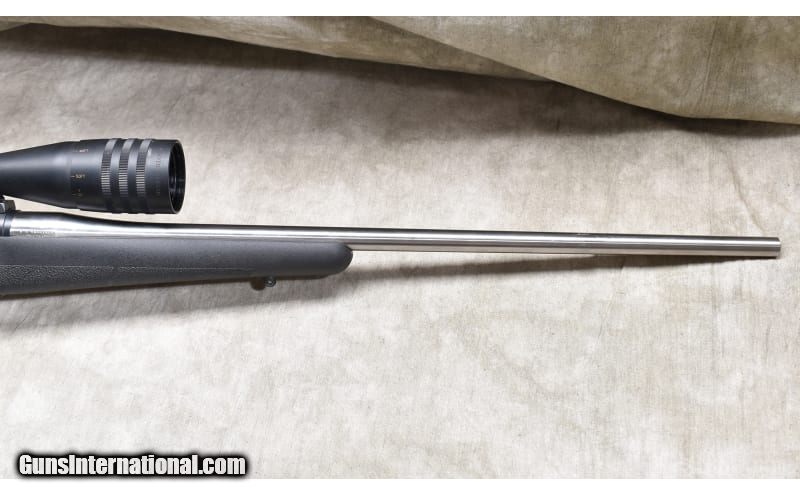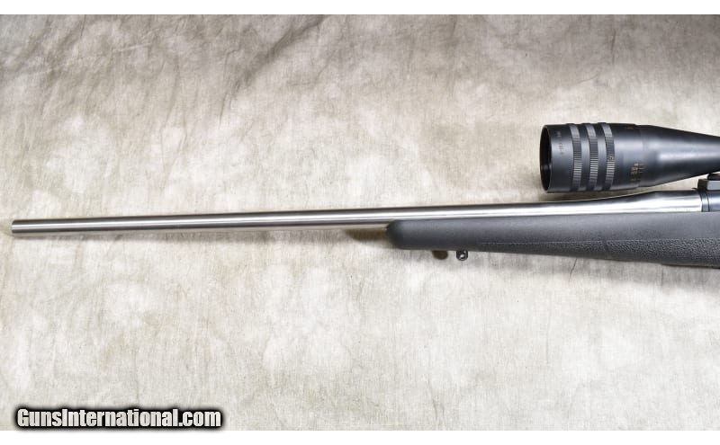 Description: Nice light rifle with black synthetic stock, Weaver classic scope, and jeweled bolt. It has a custom barrel chambered in .222 Remington. .222 Remington SOLD Chambers: 4 Metal Condition: //excellent. Wood Condition: Excellent. Bore Condition: Shiny and bright with good rifling. Barrels: 22-inch stainless steel by "G A WAKKINEN GUNSMITH Triggers: Factory trigger. Stock Dimensions: 13-inch LOP. Butt Pad: Soft rubber pad. Weight: 7 lb -15 oz Sights: Set up for scope and furnished with a Weaver Classic 4-16x42MM scope. Item Location: Rogers |
