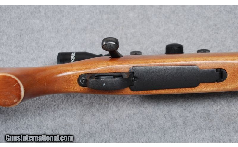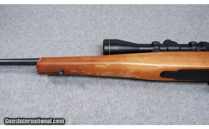 Description: SOLD Caliber Info: .223 Rem. Metal Condition: Very minor handling marks Wood Condition: Worn finish and handling marks Bore Condition: Good rifling Barrels: 22" with muzzle brake Stock: Hardwood. (Shortened) Stock Dimensions: 11 3/4" LOP Fore End: Hardwood with schnabel tip Butt Pad: Rubber Weight: 7 Lbs. 8 Oz. Sights: Tasco 3-9X40 Scope Extras: Scope, bases, and rings Item Location: Buda, TX |