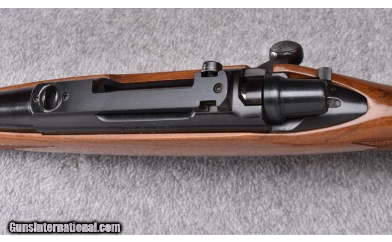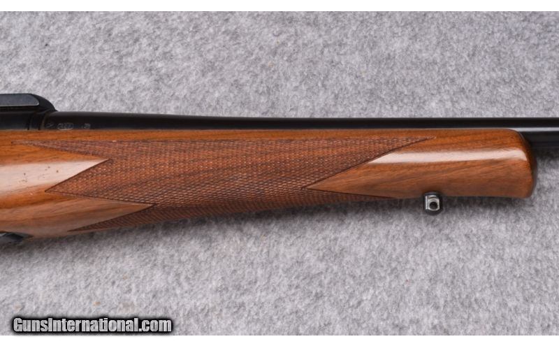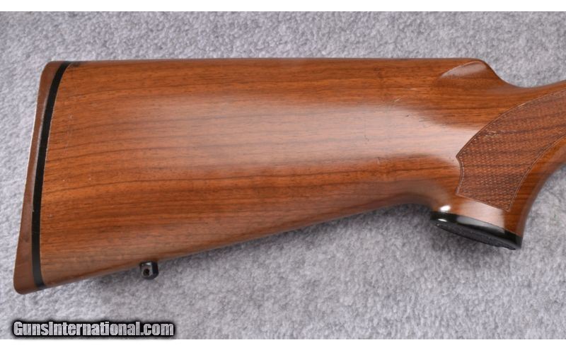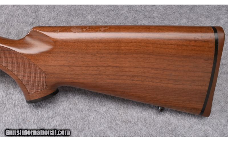 Description: Wood shows rack marks along the comb of the buttstock with some light use marks. Blue and bore remain excellent. Rear sight has been removed and scope base is included. No box. SOLD Manufacturer: S/N 766XXXX Caliber Info: .243 Win. Metal Condition: Excellent Wood Condition: Good Bore Condition: Excellent Barrels: 18 1/2 Triggers: Factory Stock: Checkered Walnut Pistol Grip with Black Cap Stock Dimensions: 13 3/8" LOP Fore End: Checkered Walnut with Schnabel Tip Butt Pad: Brown Rubber Weight: 6 1/2 LB Sights: Bead Front - Rear Sight Removed - Scope Bases Included Item Location: Wheeling, WV |