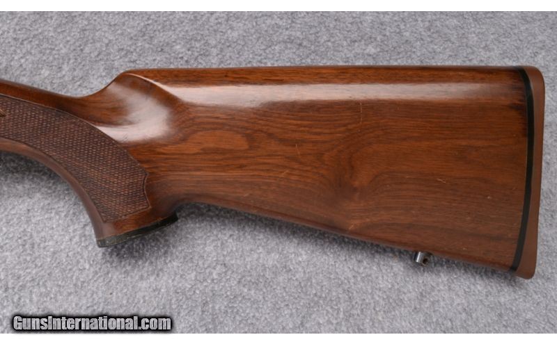 Description: Shows hunting use with an excellent bore. No box. SOLD Manufacturer: S/N 766XXXX Caliber Info: .308 Win. Metal Condition: Good Wood Condition: Good Bore Condition: Excellent Barrels: 18 1/2" LOP Triggers: Factory Stock: Checkered Walnut Pistol Grip Stock Dimensions: 13 1/4" LOP Fore End: Checkered Walnut Butt Pad: Brown Rubber Weight: 5 3/4 LB Sights: Bead Front - Adjustable Notch Rear Item Location: Wheeling, WV |