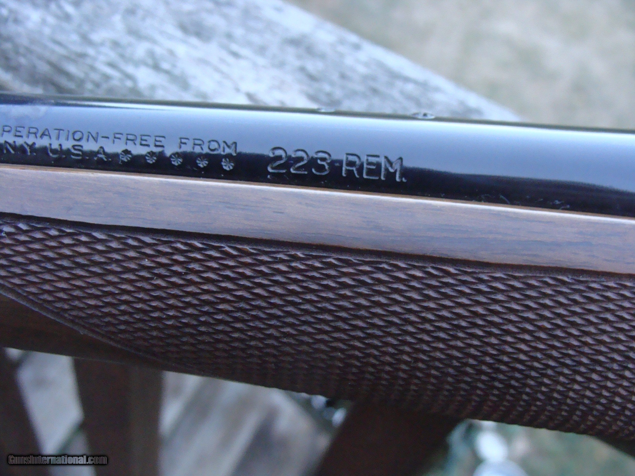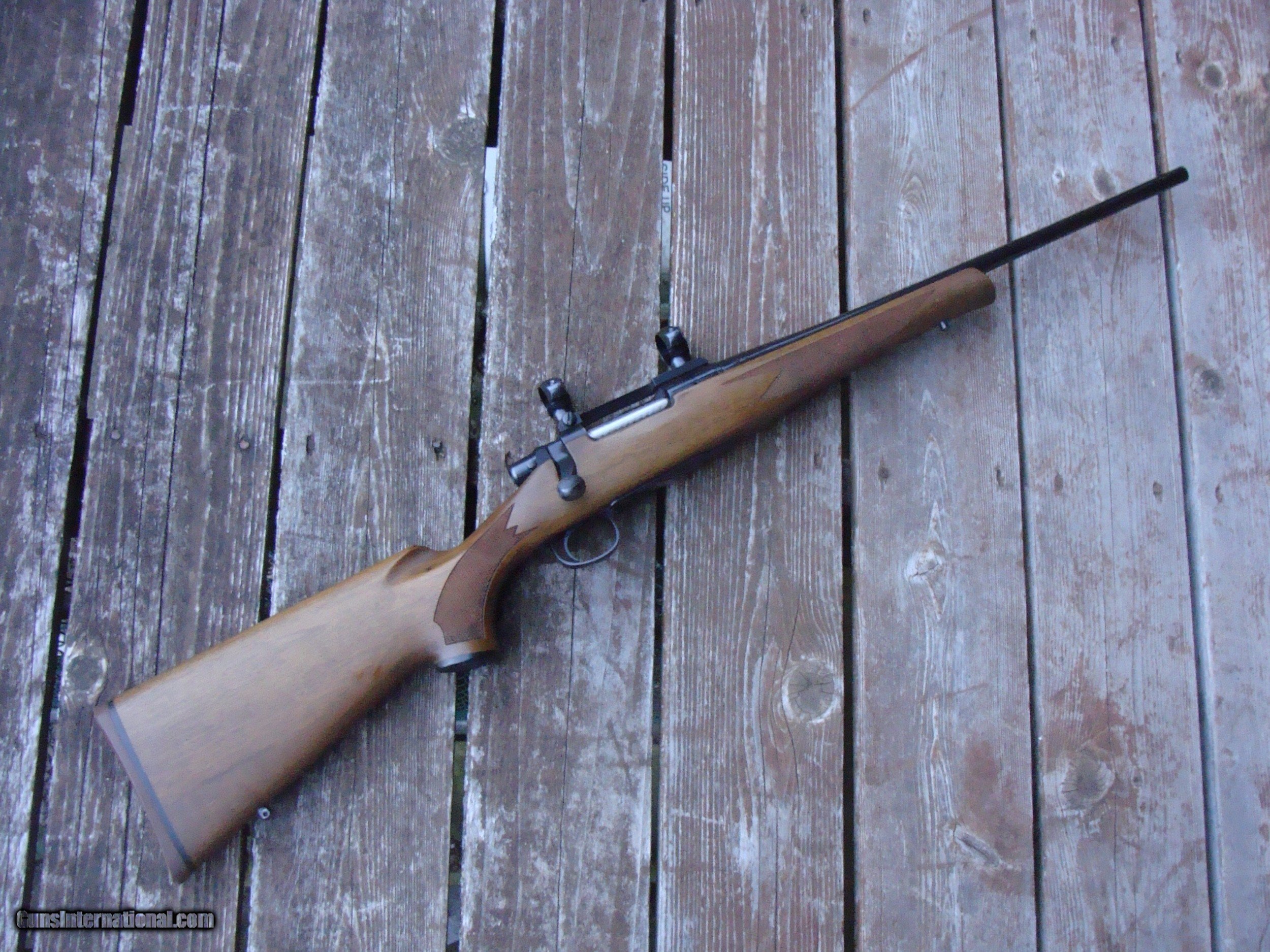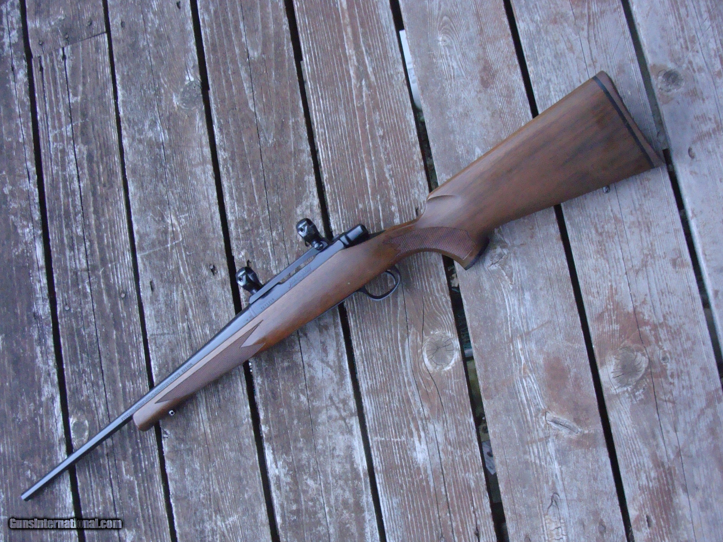 Description: These terrific little carbines in the original iteration (18 1/2") carbine barrel with handsome satin walnut stock, red pad were produced from 1983 to 1999 approx. While some veriations are still produced these were discontinued many years ago and are much sought after. Overall lenght is only 37" and the weight with the Leupold type base and rings is still only approx 6 3/4lbs. This is a fine example in over 90% cond with only a light handling marks. Not too often found in 223. Shipping is $ 45.00 WE HAVE OVER 1500 SALES ON ALL SITES WITH AN A+ RATING ON ALL (WE ALSO KEEP AN INVENTORY OF OLDER PERIOD CORRECT SCOPES; CALL WITH NEEDS) WE MOSTLY PICK VERY CLEAN AND LIGHLTY USED GUNS. WE ARE HAPPY TO TAKE CONSIGNMENT GUNS AND COLLECTIONS OR WILL BUY YOURS OUTRIGHT. WE SOMETIMES ARE EMPLOYED FOR ESTATE PURPOSES AND VALUATIONS. CT RESIDENTS MUST CONTACT US TO UNDERSTAND OUR IN STATE TRANSFER POLICIES. WE CAN TAKE A CREDIT CARD HOWEVER THERE IS A 3% ADD ON BASED ON THE TOTAL FOR USE OF A CARD. IT IS ALWAYS THE BUYERS RESPONSIBILITY TO GET US A COPY OF YOUR RECEIVING FFL'S LIC AND WE REQUIRE A COPY OF YOUR PHOTO ID BEFORE THE GUN SHIPS YOU MUST CALL YOUR FFL.WE DO NOT CALL FOR YOU. LAYAWAY PURCHASES NOT COMPLETED OR ANY RETURNED ITEM UNLESS NOT AS DESCRIBED ARE SUBJECT TO A 10% RELISTING/RESTOCKING FEE AND MUST BE RETURNED WITH NO MARKS OR SCRATCHES, SENT BACK INSURED, PRIORITY SIGNATURE REQUIRED WE DO NOT OFFER AN INSPECTION PERIOD PER SE HOWEVER GUNS MAY BE RETURNED IF NOT EXACTLY AS DESCRIBED UNDER NO CIRCUMSTANCE MAY ANY GUN TO BE RETURNED HAVE BEEN REMOVED AT ANY TIME FROM RECEIVING FFL DEALERS PREMISIS AND RETURNS MUST 1ST BE APPROVED BY US IN WRITING. SOLD |