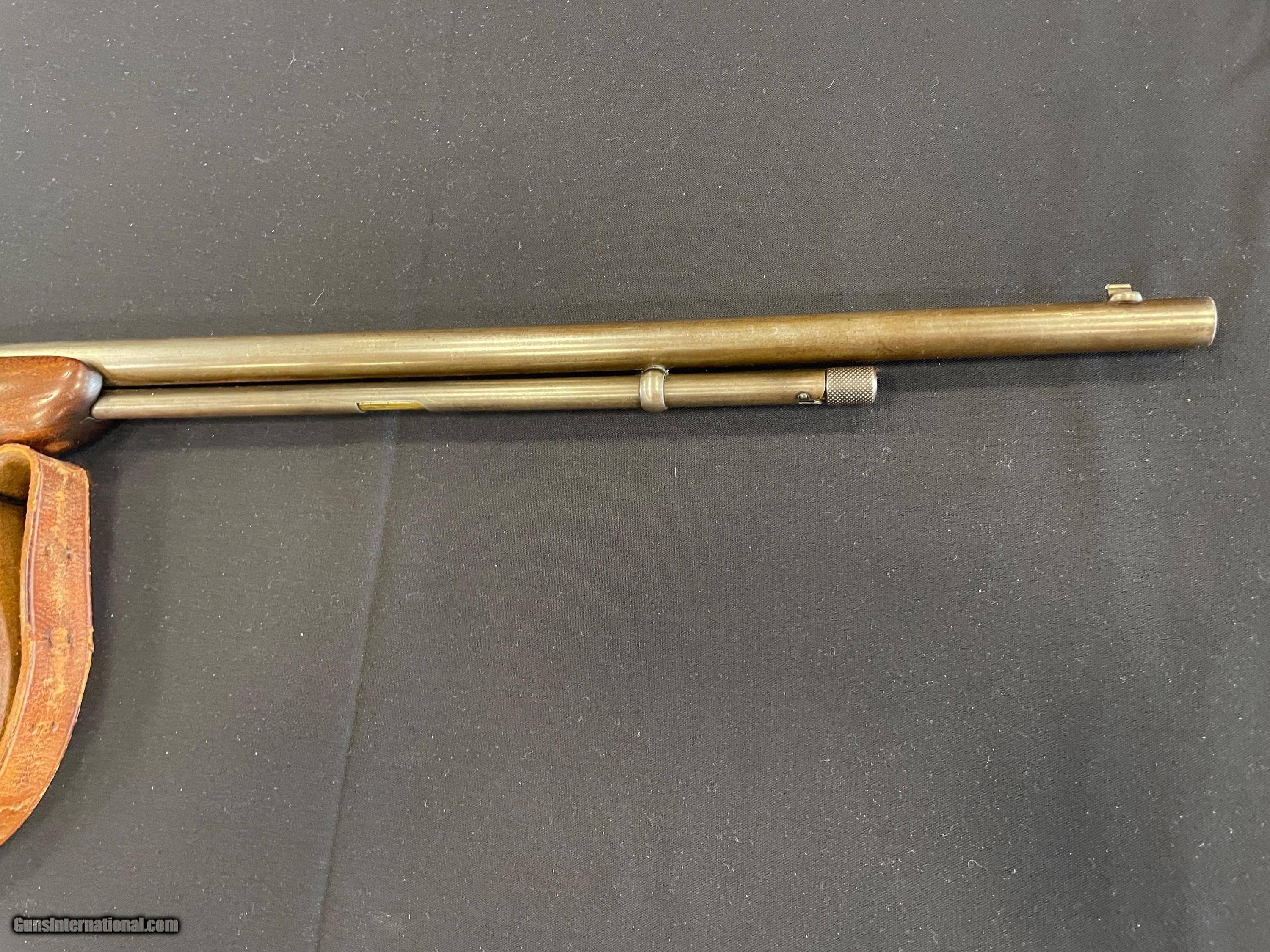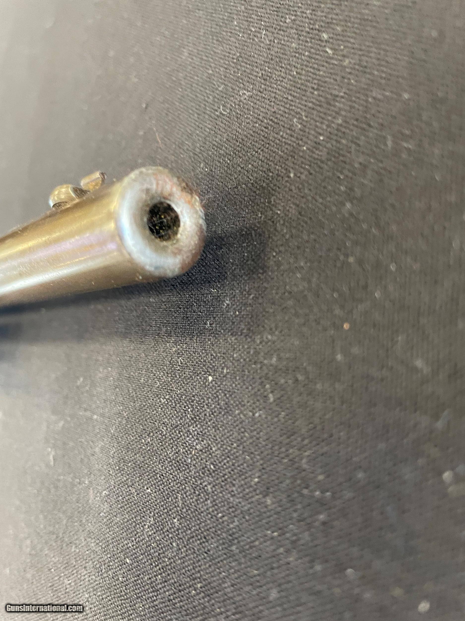 Description: Great Addition to your Remington collection! The Remington Model 341 is a bolt-action rifle designed and built by Remington Arms for four years prior to World War II.[1]. This used rifle is in good overall shape showing normal handling marks for a gun this old. Bore is broken gut and shiny. Barrel length 23 1/2" long. Receiver is factory drilled and tapped. Remington Model 341 Type Rifle Place of origin United States Production history Designer C.C. Loomis Designed 1936 Manufacturer Remington Arms Produced 1936 - 1940 No. built 131,604 Specifications Cartridge .22 Long Rifle, .22 Short, .22 Long Action Bolt Action Rifle Feed system tubular magazine Sights Iron S/H/I. $40.00 SOLD |