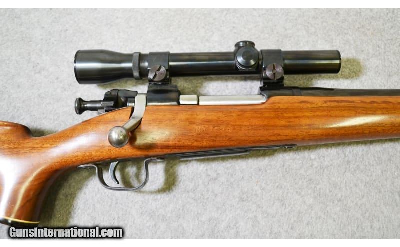 Description: Here is an interesting gun. It has an 03 style action but no caliber marking on the barrel. It appears to be a 30 caliber of some flavor. The stock is very nice and comes with a scope that appears to be 4x. The scope also has no marking on it. Unknown SOLD Chambers: Unknown Metal Condition: Very Good Wood Condition: Excellent Bore Condition: Very Good Barrels: 22 Inches Triggers: Factory Stock Dimensions: 13 1/2 LOP Fore End: Wood Butt Pad: Red Recoil Pad Weight: 9 lb Sights: 4x scope Item Location: Mitchell, SD |