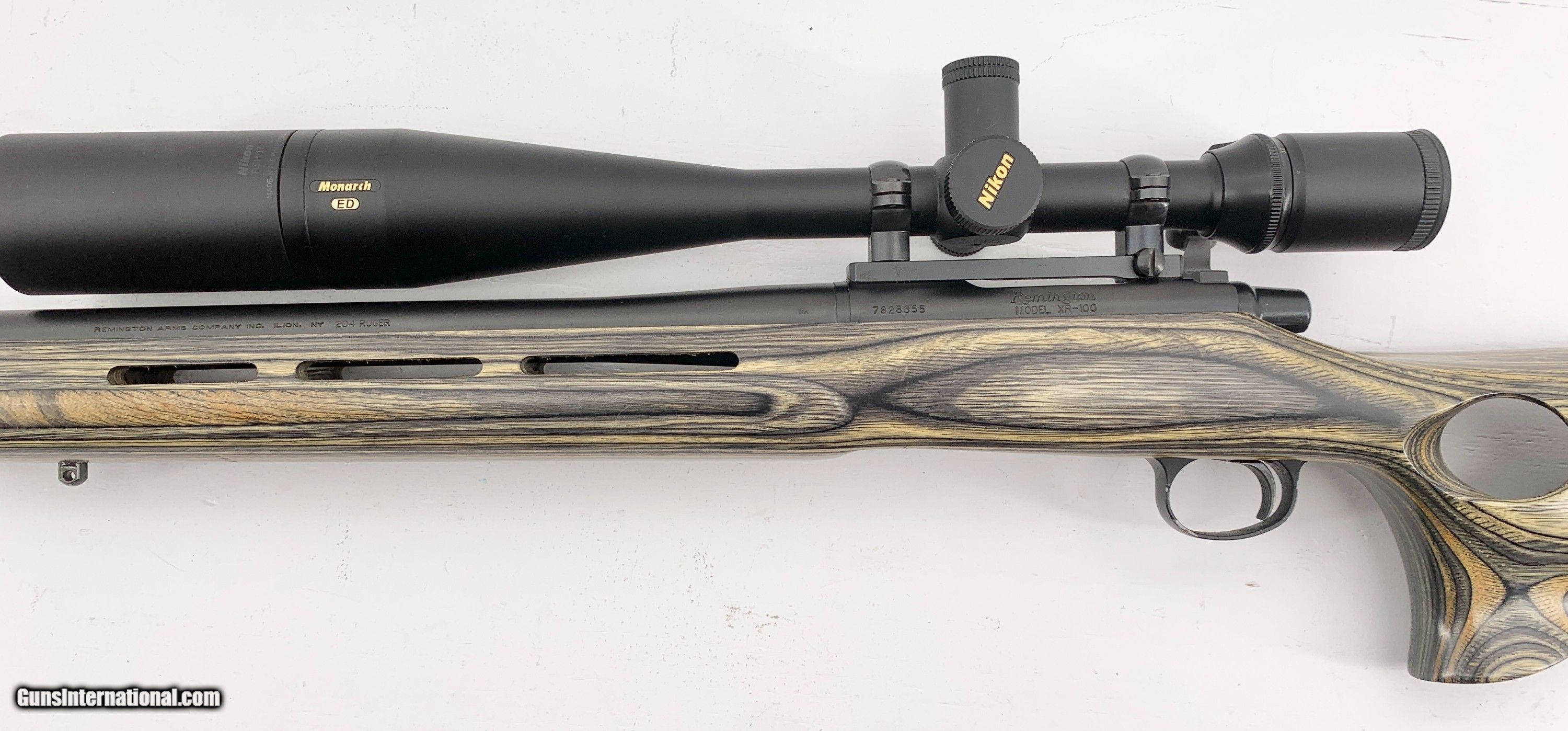 REMINGTON MODEL XR-100 BOLT ACTION 26" HEAVY BULL BARREL GREEN LAMINATE TARGET STOCK NIKON MONARCH 8-32x50 OPTIC .204 RUGER!