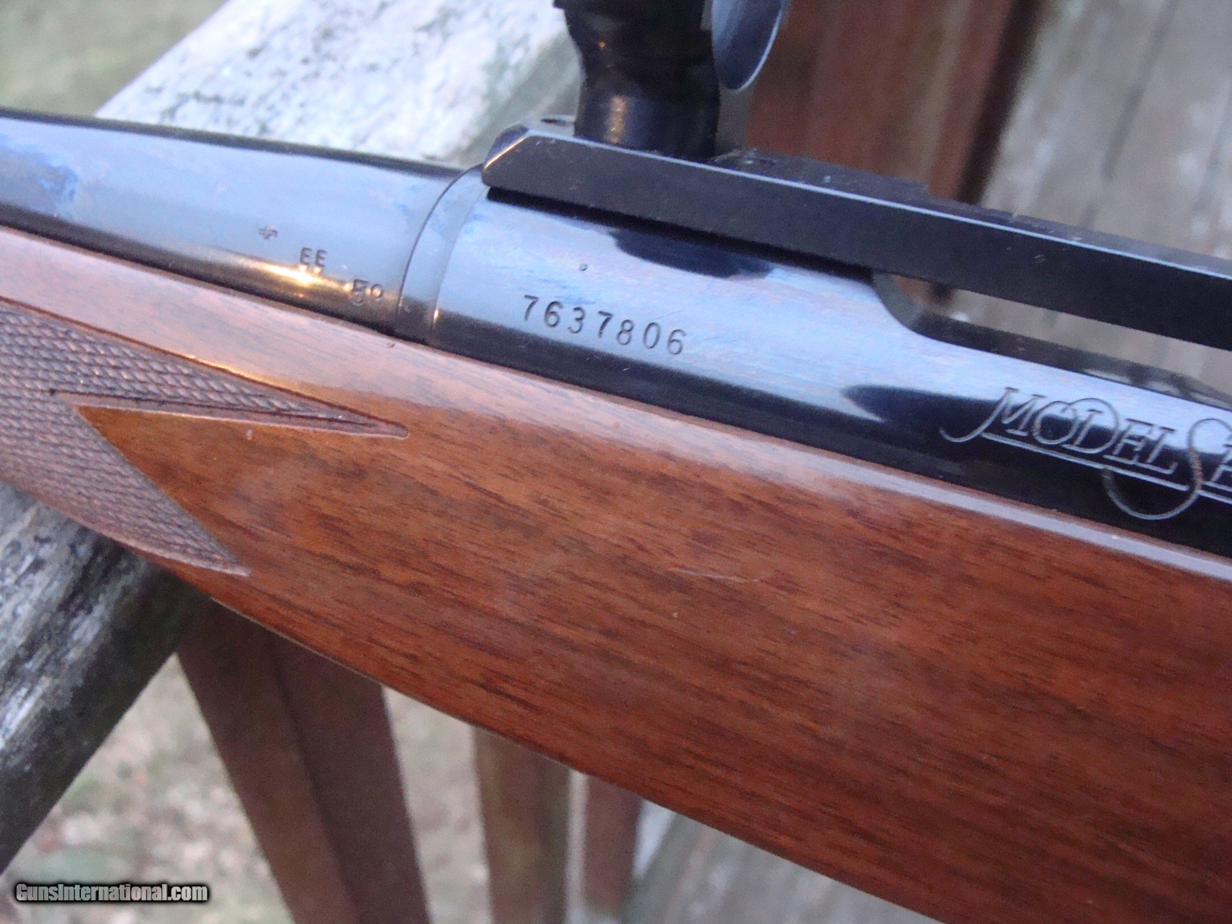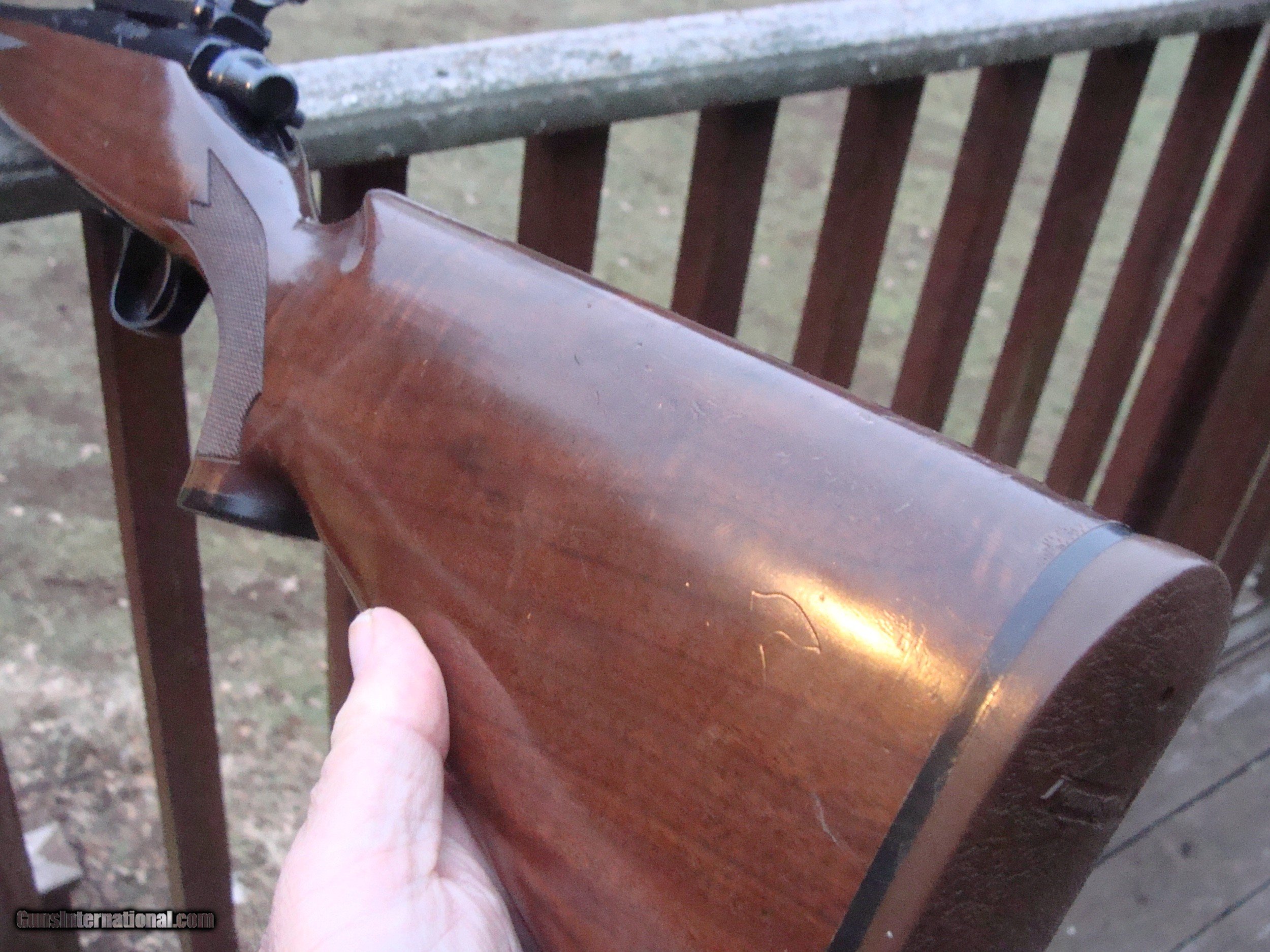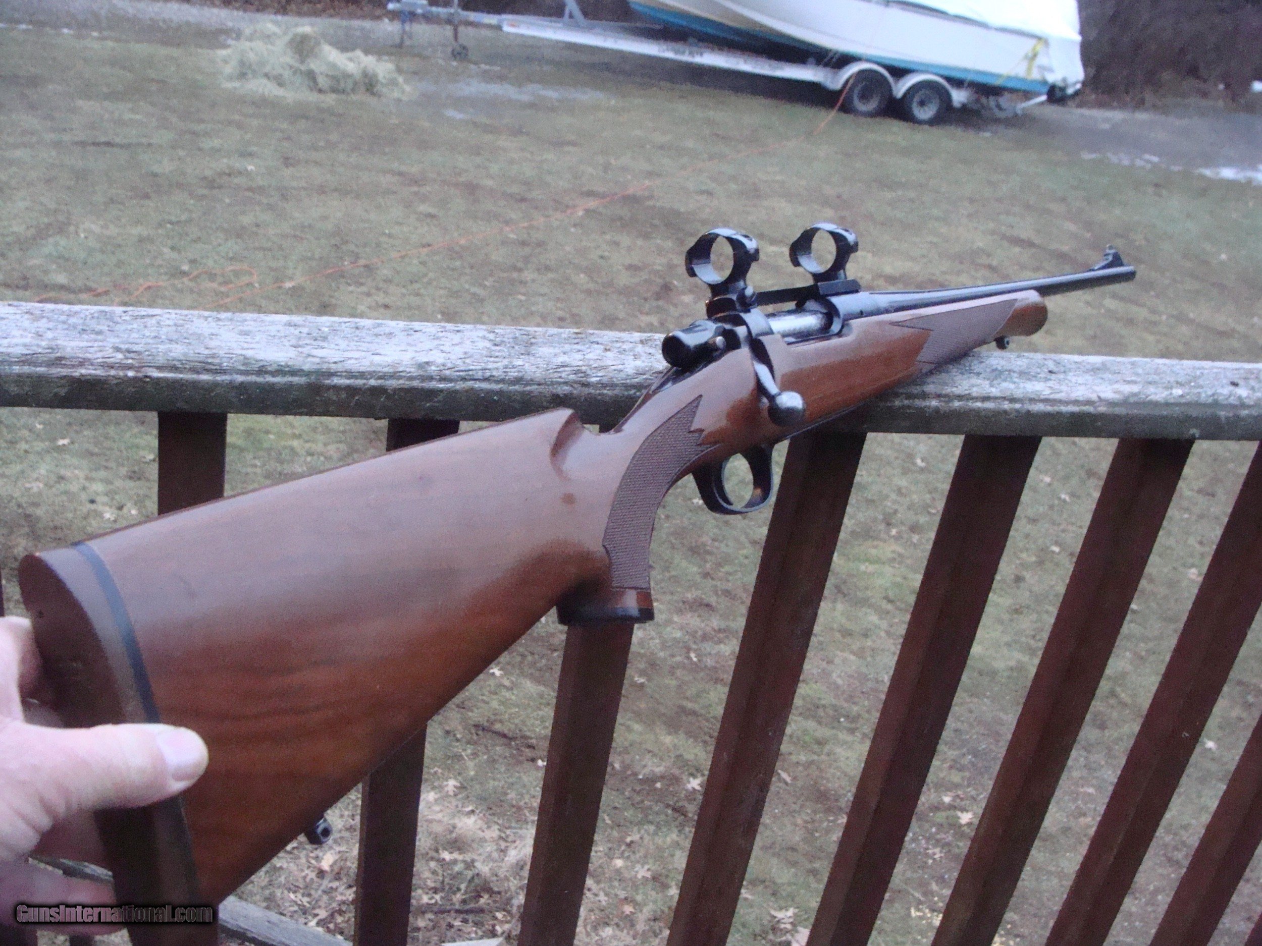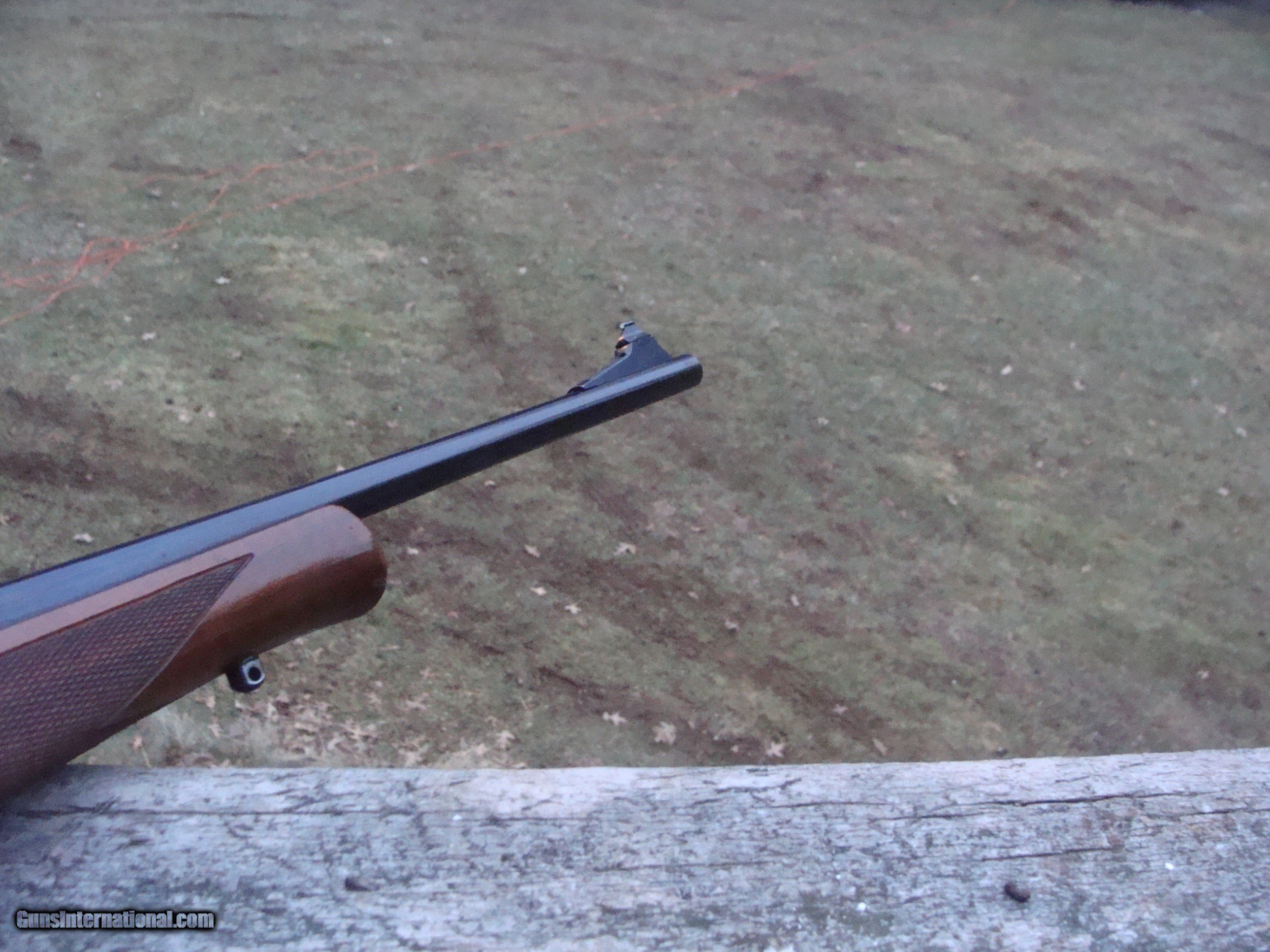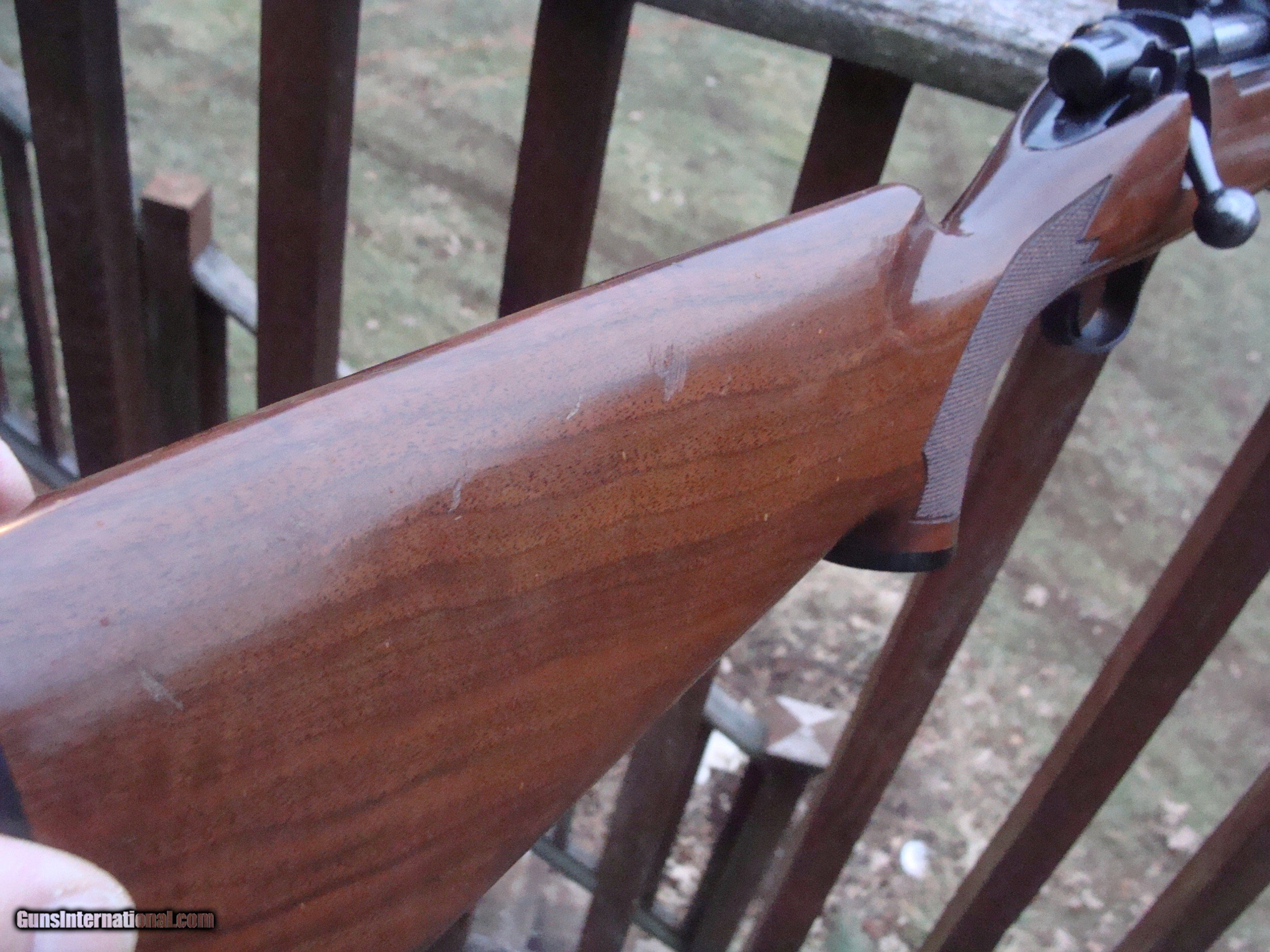 Description: These little gems are increasingly hard to find and are usually considerably more $ than this one. The condition of the blue and metal surfaces is excellent with a few marks on the floor plate and trigger guard only . The gun has been hunted and carried in a rack so there are some compression marks on the stock and a very small ding in the wood near the tip of the schnable forend; we are calling it good to very good but not excellent cond. It has not been fired or used much and the nice engine turned bolt retains all of the nice polishing marks. Walnut stock is a nice medium to dark color. It comes with Leupold or Redfiled type scope bases and rings. We have many used scopes at bargain prices ....inquire with needs. Overall lenght is only 37 1/2" with a factory 18 1/2" barrel, light and handy. NOTE: WE HAVE BEEN BOTHERED BY NUMEROUS FAKE INQUIRIES. IF YOU ARE INTERESTED IN ANY OF OUR GUNS YOU MUST CALL US FIRST. WE WILL NOT REPLY TO EMAIL OR TEXT INQUIRIES WITHOUT HAVING SPOKEN TO YOU PRIOR NO TIRE KICKERS PLEASE, ONLY INQUIRE IF YOU ARE INTERESTED IN PURCHASING ONE OF OUR GUNS. WE ARE AN FFL 01 IN THE NORTHEAST WHERE MANY FINE US MADE GUNS WERE PRODUCED. WE OFTEN GET HARD TO FIND AND MANY TIMES LIGHTLY USED AND UNIQUE GUNS. WE SOMETIMES GO CONSIDERABLE DISTANCES TO GET THESE. WE PAY FAIR PRICES FOR THEM AND PRICE THEM FAIRLY, USUALLY BELOW WHAT OTHERS ARE ASKING. OUR MARGINS ARE TYPICALLY VERY MODEST SUCH THAT WE DO NOT HAVE ROOM TO NEGOIATE PRICES IN MOST CASES. WE HAVE OVER 1500 SALES ON ALL SITES WITH AN A+ RATING ON ALL (WE ALSO KEEP AN INVENTORY OF OLDER PERIOD CORRECT SCOPES; CALL WITH NEEDS) WE ARE HAPPY TO TAKE CONSIGNMENT GUNS AND COLLECTIONS OR WILL BUY YOURS OUTRIGHT. WE SOMETIMES ARE EMPLOYED FOR ESTATE PURPOSES AND VALUATIONS. CT RESIDENTS MUST CONTACT US TO UNDERSTAND OUR IN STATE TRANSFER POLICIES. WE CAN TAKE A CREDIT CARD HOWEVER THERE IS A 3% ADD ON BASED ON THE TOTAL FOR USE OF A CARD. IT IS ALWAYS THE BUYERS RESPONSIBILITY TO GET US A COPY OF YOUR RECEIVING FFL'S LIC AND WE REQUIRE A COPY OF YOUR PHOTO ID BEFORE THE GUN SHIPS YOU MUST CALL YOUR FFL.WE DO NOT CALL FOR YOU. LAYAWAY PURCHASES NOT COMPLETED OR ANY RETURNED ITEM UNLESS NOT AS DESCRIBED ARE SUBJECT TO A 10% RELISTING/RESTOCKING FEE AND MUST BE RETURNED WITH NO MARKS OR SCRATCHES, SENT BACK INSURED, PRIORITY SIGNATURE REQUIRED WE DO NOT OFFER AN INSPECTION PERIOD PER SE HOWEVER GUNS MAY BE RETURNED IF NOT EXACTLY AS DESCRIBED UNDER NO CIRCUMSTANCE MAY ANY GUN TO BE RETURNED HAVE BEEN REMOVED AT ANY TIME FROM RECEIVING FFL DEALERS PREMISIS AND RETURNS MUST 1ST BE APPROVED BY US IN WRITING. Shipping to any location in the lower 48 States is $ 45.00 Priority Mail. SOLD |