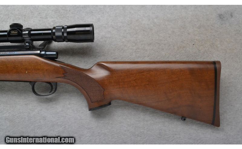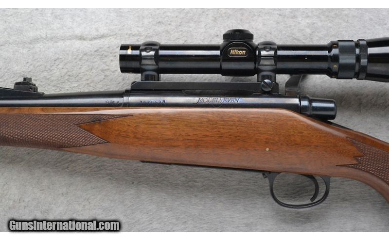 Description: This Remington Model Seven is a right hand bolt action rifle in .308 Win. Cal. It has an 18.5 inch barrel. A blade front sight and an adjustable notch middle sight. It is outfitted with a Nikon Scope. The butt stock is a checkered grip walnut pistol grip with a black cap. The forearm is a checkered grip walnut. .308 Winchester SOLD Chambers: Internal magazine with a hinged floor plate. Metal Condition: Excellent. Wood Condition: Excellent. Bore Condition: Excellent. Barrels: 18.5 inch. Stock Dimensions: 13 3/8 inches. Fore End: Checkered grip walnut. Butt Pad: Remington brown rubber pad. Weight: 7 Lb. 3 Oz. Sights: Raised blade front. Adjustable notch middle. Nikon1.5-4.5 Scope. Item Location: Richfield, WI |