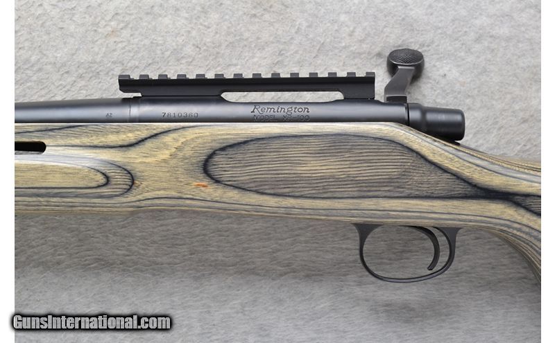Description: This Remington Model XR-100 is a single shot right hand bolt action rifle in .204 Ruger Cal. It has a 26 inch heavy target barrel. No iron sights. There is a rail on top of the receiver. The butt stock is a hardwood laminate thumbhole pistol grip with a raised cheekpiece. The forearm is a smooth grip hardwood laminate with side vent holes. The bolt is jeweled and the bolt handle is checkered. .204 Ruger SOLD Chambers: Single shot. Metal Condition: Excellent. Wood Condition: Excellent. Bore Condition: Excellent. Barrels: 26 inch heavy target barrel. Triggers: Grooved. Stock Dimensions: LOP 13 3/8 inches. Fore End: Smooth grip hardwood laminate with side vent holes. Butt Pad: Remington black rubber pad. Weight: 9 LB. 14 OZ. Sights: No iron sights. Rail on top of receiver. Item Location: Richfield, WI |