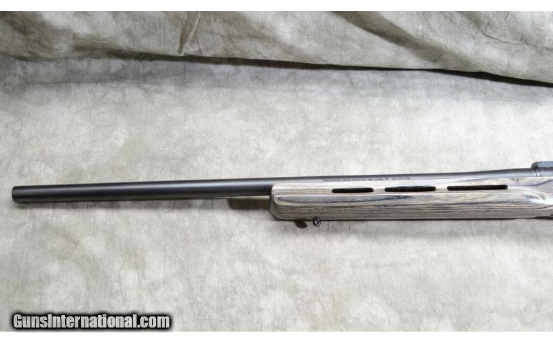 Description: Featuring a grey laminated thumbhole stock with heavy barrel and wide forearm, this single shot bolt action rifle is set up for your choice of sight and has jeweled bolt and knurled bolt knob. It has a rolled over comb and ventilated forearm. SOLD Manufacturer: Barrel code "AZ" would imply 2004. Caliber Info: .22-250 Remington. Chambers: Single shot bolt action. Metal Condition: Excellent. Wood Condition: Excellent. Bore Condition: Shiny and bright. Barrels: 26 inch heavy barrel (0.82 dia. at muzzle.) Triggers: Factory grooved trigger. Stock: Laminated hardwood with thumbhole and rolled-over comb. Stock Dimensions: 13 - 3/8 inch LOP. Fore End: Heavy ventilated forearm. Butt Pad: Rubber pad. Weight: 9 lb. - 12 oz. Sights: Set up for your choice of scope. Item Location: Rogers,, MN |