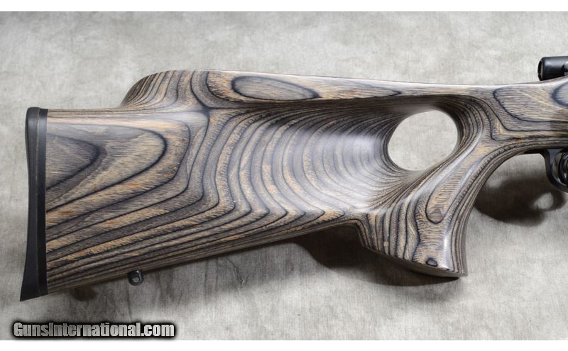 Description: Featuring a grey laminated thumbhole stock with heavy barrel and wide forearm, this single shot bolt action rifle is set up for your choice of sight and has jeweled bolt and knurled bolt knob. It has a rolled over comb and ventilated forearm. .22-250 Remington SOLD Chambers: Single shot bolt action. Metal Condition: Excellent. Wood Condition: Excellent. Barrels: 26 inch heavy barrel (0.82 dia. at muzzle.) Triggers: Factory grooved trigger. Stock Dimensions: 13 - 3/8 inch LOP. Fore End: Heavy ventilated forearm. Butt Pad: Rubber pad. Sights: Set up for your choice of scope. Item Location: Boise, ID |