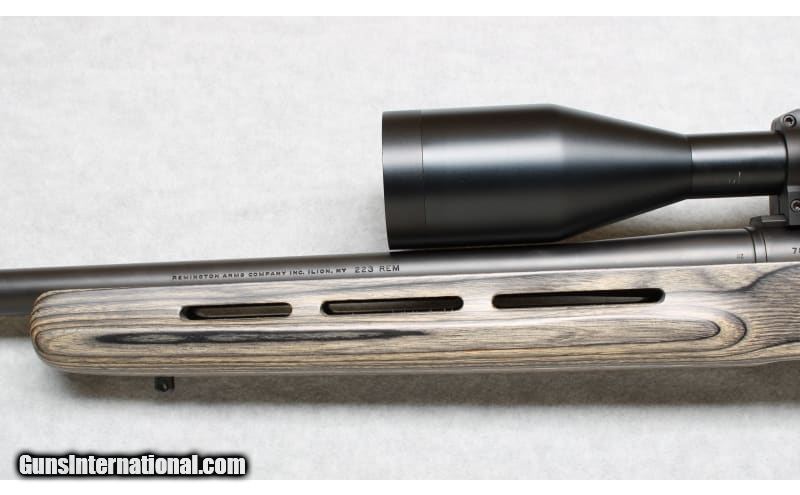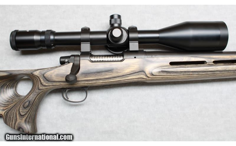 Description: Excellent condition, light wear and handling marks. Remington bolt action rifle with 26" heavy barrel chambered for the Remington .223 cartridge. Very nice laminated hardwood thumbhole stock with RH cheekrest and factory recoil pad. Smooth action with jeweled bolt and crisp trigger pull, and a Tasco Custom Shop 8-30x target scope. A great choice for target shooting competitions or varmint hunting. .223 Remington SOLD Chambers: Bolt action Metal Condition: Excellent Wood Condition: Excellent Bore Condition: Bright Barrels: 26 Triggers: Factory Stock Dimensions: 13 1/2" LOP Fore End: Vented Butt Pad: Factory pad Weight: 10lbs Sights: Tasco 8-30x scope Item Location: Rapid City, SD |