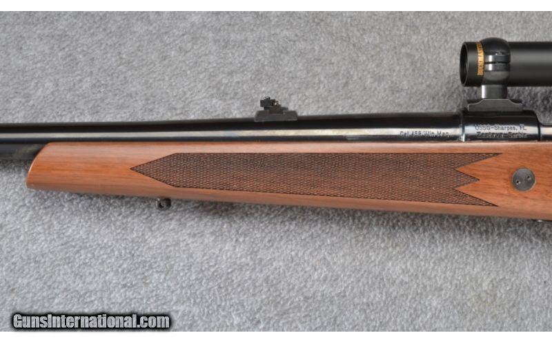 Description: Blue and bore are excellent. Wood shows light use/storage marks. Complete with a Nikon Buckmaster 1X optic. SOLD Manufacturer: S/N ZA70060XXXX Caliber Info: .458 Win. Mag. Metal Condition: Excellent Wood Condition: Very Good Bore Condition: Excellent Barrels: 26 Triggers: Factory Stock: Checkered Walnut Pistol Grip Stock Dimensions: 13 5/8" LOP Fore End: Checkered Walnut Butt Pad: Black Vented Rubber Weight: 9 1/2 LB Sights: Hooded Bead Front - Folding Notch Rear - Nikon Buckmaster 1X Item Location: Kansas City, KS |
