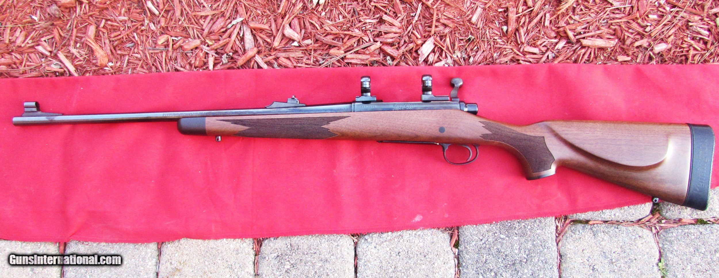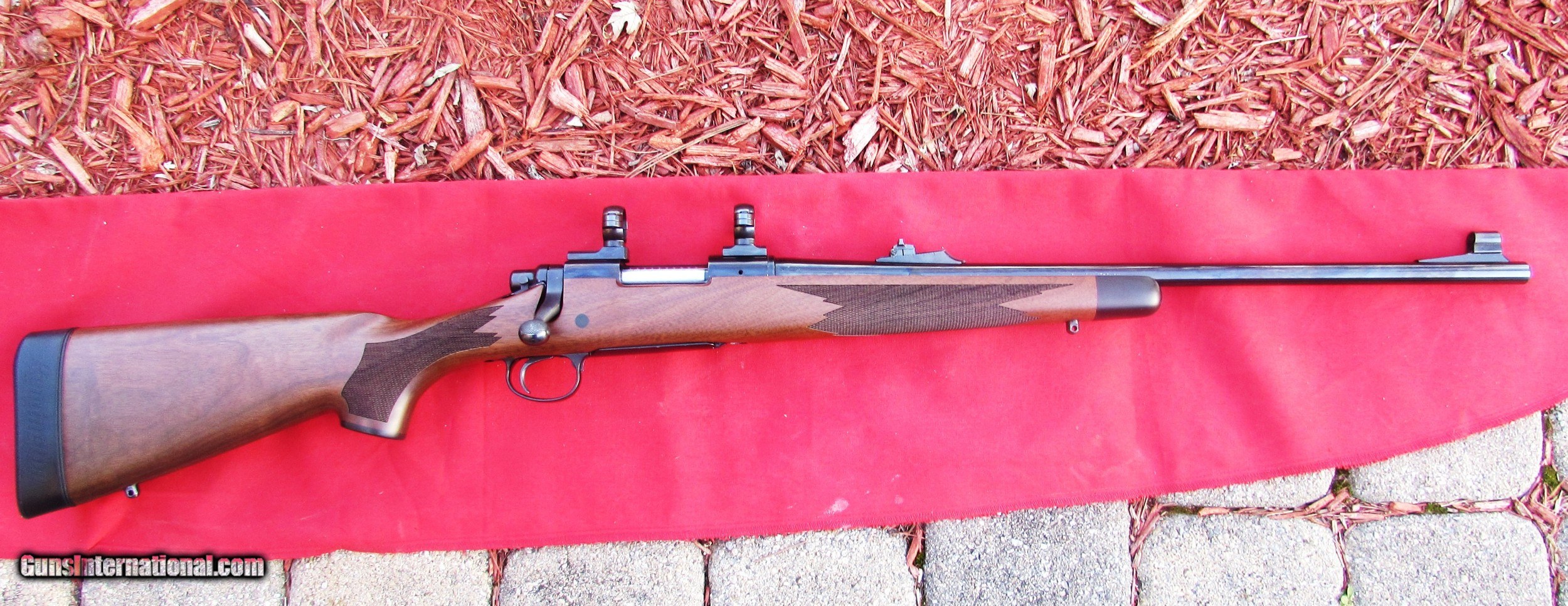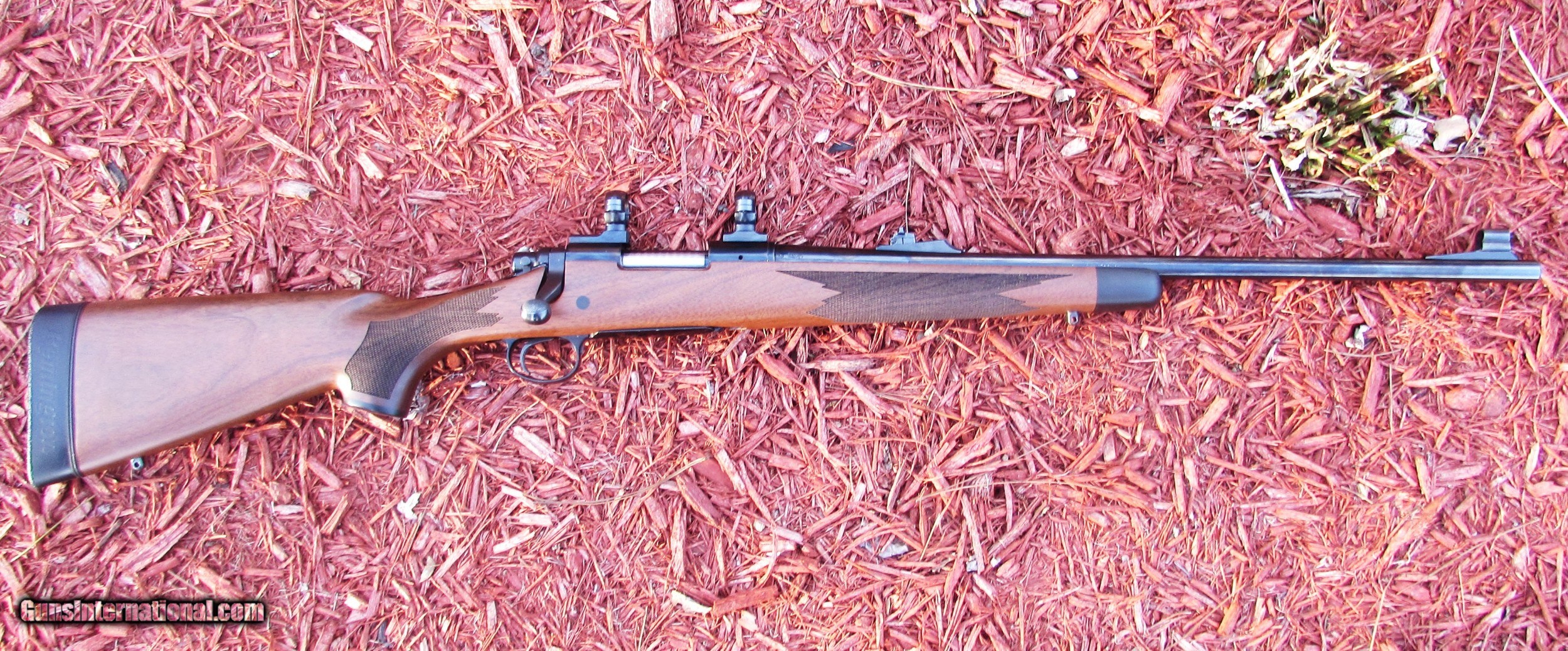 Description: PENDING SALE-This is a somewhat unusual piece. A barreled action from a Remington 700 Classic in 350 Remington Magnum was placed in a more modern CDL stock. It maintains the 22" barrel and open sights, but has the thicker magnum recoil pad. It is already outfitted with Leupold bases and 1" rings. Condition is about flawless. Included is a 2nd synthetic stock for bad weather hunting. Included is an assortment of 64 factory rounds in 200 and 250 grain and some remaining brass. This ammunition is very hard to obtain and has gotten very expensive. This will give you enough for a while. Thie 350 Rem Mag is a little powerhouse of a round, capable of taking everything including Moose, Elk, and the big Bears. Shipping will be $50 to cover the rifle to your FFL as well as the ammunition in a separate shipment as required. SOLD |