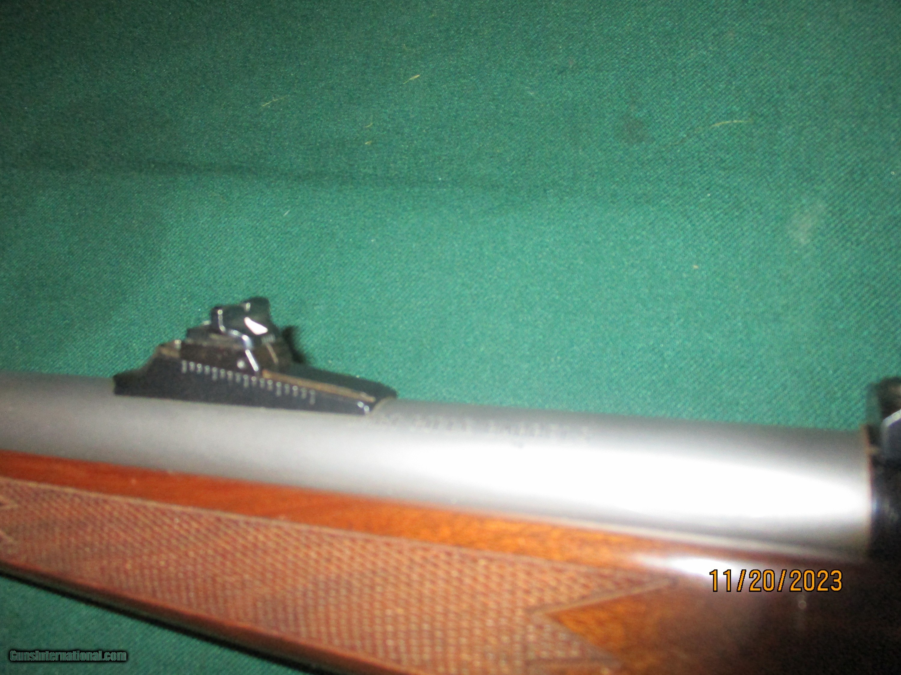 Description: 22 1/2" stainless HART ( Spl. Order) Competion bbl. crowned end, hooded post blade on ramp front, sliding adj, open rear mounted top of bbl. micro adj.ramp, custom target trigger, front standing hooded post blade, factory drilled & tapped also 5/8" grooved receiver rail, Leupold bases , 1" med./high rings, Weaver Elite Micro Trac 36X x 44mm WA scope with 300 yrd adj. obj., steel screw on protective lens covers, auxiiilary height &, R & L replacement adjustments, rosewood forend tip , checkered butt & pistol grip cap, HART Match bbl. supplied to Remington Costom Shop on limited request! ( 98%% OA with few minute scratches, shot very little, scarce Remington collectable! ( Previous owner Quail outfitter - initial GG of Thomasville, Ga,.of pictured rifle & scope recently shot competivaetly 20 shots fach for $1000 per shot abainst a Remington 40X at 50 yrds., wooden matches with phosporus end tips & ended up + $6000 (13 to 7) struck & lit at the 50 yrds) SOLD |