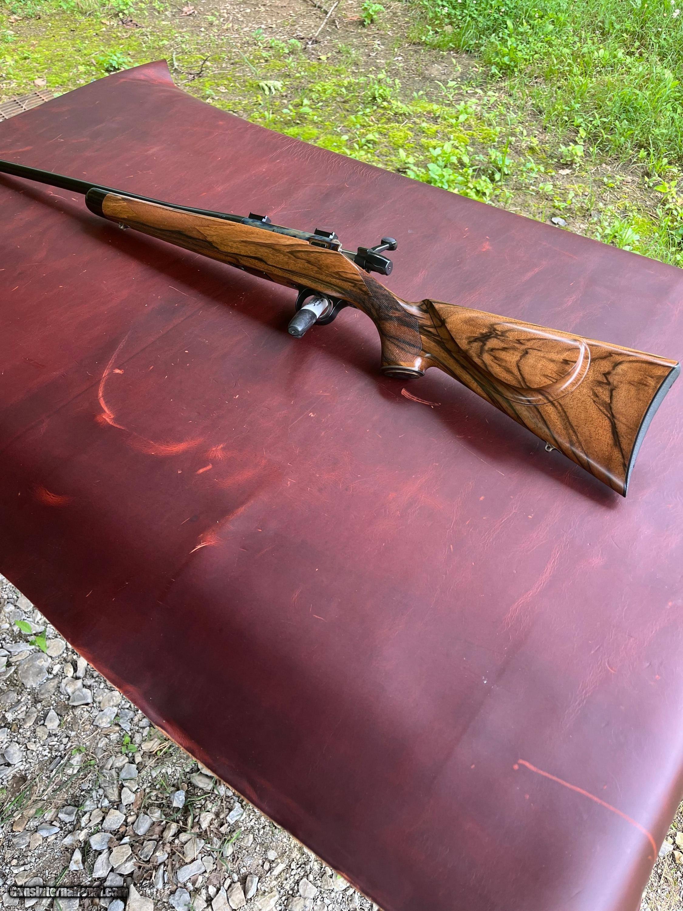 Description: As seen before from Hnedershots Sporting Goods in Maryland, as the second owner, this is a customized Remington 547 C GRade with exhibition wood and many refinements to include -case color reciver, 2 inletted ken howell swivels, and solid 2 screw grip cap, -Rust blue barrel -Jewelled bolt -Shadowline cheekpiece -Checkered Steel "Niedner" buttplate -Hand rubbed oil finish -Hand wrap checkering This gun is new in box and 100% in all ways. Sold and shipped to Hnedershots Sporting Goods in 2018. All paperwork has been retained to include sales slip from first to second owner. Shipping is $40- If you want insurance than that is $1.5/ $100 insured dollars not to exceed $4,999.00 Only listed here and on GB- Other listings are scams SOLD Rifle Caliber: .22 Long Rifle Manufacturer: Remington Model: 547 Condition: New Metal Condition: New Wood Condition: New Bore Condition: New |