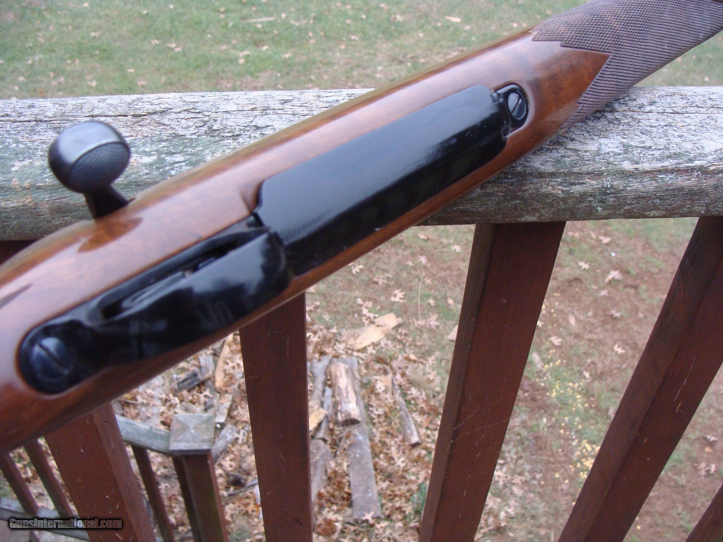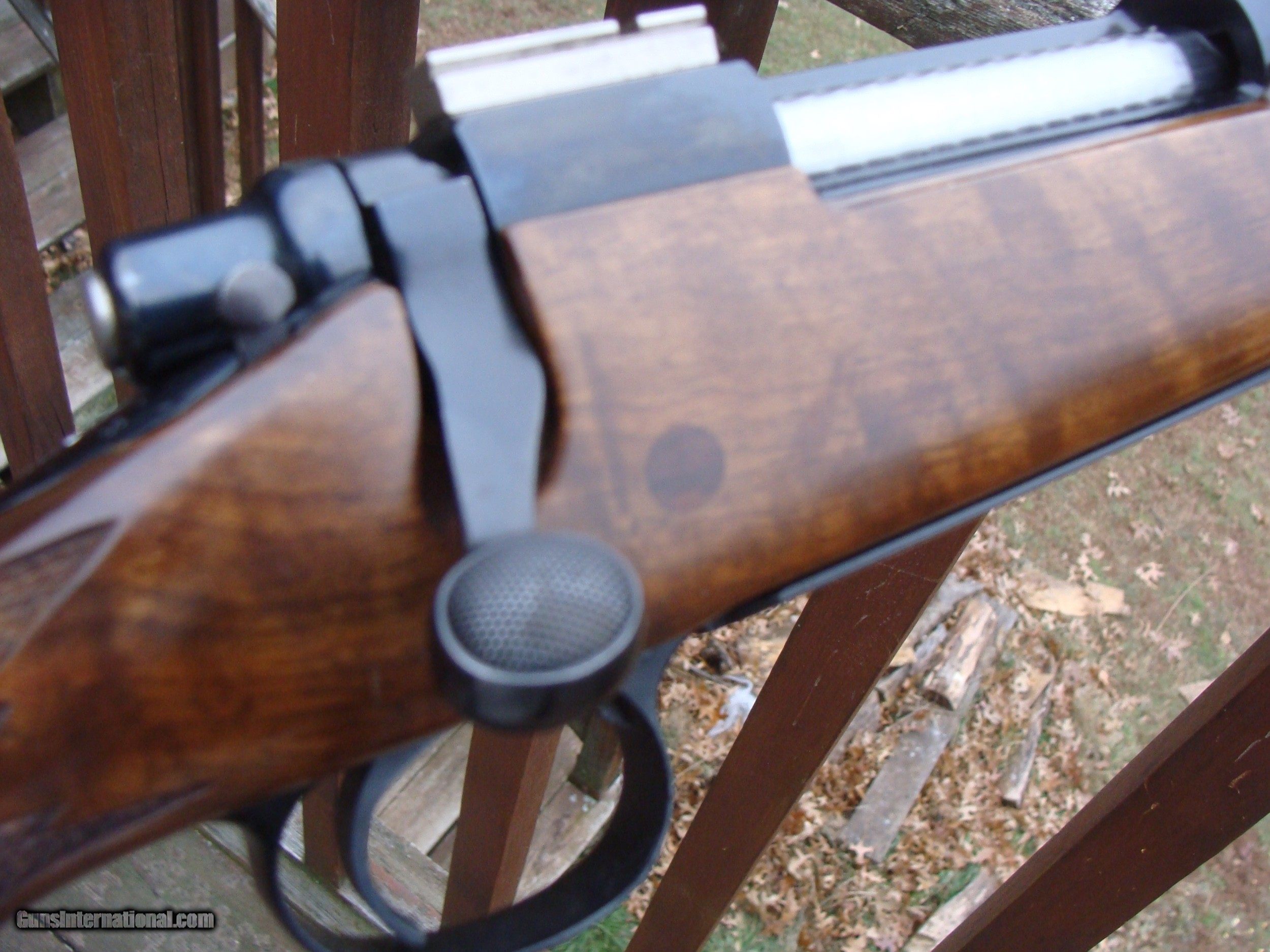Description: Beautiful C Grade in most desirable 280 Rem Stunning Heavily Figured American Walnut Stock. Ser # prefix B Barrel Date Code CE. Med Contour barrel w/o sites. Overall condition is excellent with light field use and a few modest handling marks but no issues. Light longitudinal scratch on floor plate but did not penetrate blue. C Grades come with distintive cut fine checkering and Rosewood forend tip and pistol grip cap. High luster polish on blue and engine turned bolt shows no sign of wear or use. Stock professionally shortened slightly (approx 1/2") and Kick Eez Pad prof. installed. A 1" pad as was likely installed originally would bring this to within 1/4" of factory however it does not feel short with the Kick Eez pad to me as it is now. New List Price for a C Grade is not much under 3k. We are offering this beauty for well under half of that. WE ARE AN FFL 01 IN THE NORTHEAST WHERE MANY FINE US MADE GUNS WERE PRODUCED AND WE OFTEN GET SOME FARILY HARD TO FIND AND HARDLY USED GUNS. (WE ALSO KEEP AN INVENTORY OF OLDER PERIOD CORRECT SCOPES; CALL WITH NEEDS) WE MOSTLY PICK VERY CLEAN GUNS, PRICE THEM FAIRLY AND WORK WITH MODEST MARGINS WE ARE HAPPY TO TAKE CONSIGNMENT GUNS AND COLLECTIONS OR WILL BUY YOURS OUTRIGHT. WE SOMETIMES ARE EMPLOYED FOR ESTATE PURPOSES AND VALUATIONS. CT RESIDENTS MUST CONTACT US TO UNDERSTAND OUR IN STATE TRANSFER POLICIES. WE CAN TAKE A CREDIT CARD HOWEVER THERE IS A 3% ADD ON BASED ON THE TOTAL FOR USE OF A CARD. IT IS ALWAYS THE BUYERS RESPONSIBILITY TO GET US A COPY OF YOUR RECEIVING FFL'S LIC PRIOR TO THE GUN BEING SHIPPED....WE DO NOT CALL FOR YOU. SHIPPING IS $ 45.00 TO MOST LOCATIONS IN THE LOWER 48 STATES. MOST OFTEN BUT NOT ALWAYS WE SHIP IN SPECIALTY SHIPPING CARTONS AND RATES AS QUOTED ARE USUALLY SLIGHLTY HIGHER THAN ACTUAL; THE DIFFERENCE GOES INTO A RESERVE FOR OUR (SELF) INSURANCE AS WE FIND THE CARRIERS NEVER PAY FIREARMS CLAIMS . SOLD |