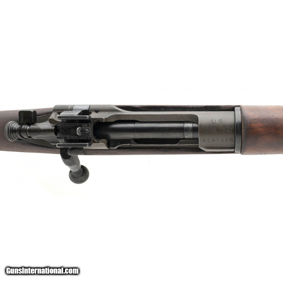 Serial No. 4197465, made in 1944, .30-06, 24"" round barrel dated 11-43, Bore is excellent with bright rifling visible. Light oxidation visible on barrel band. Stock has expected wear with cartouches present. Action functions correctly, nice WWII 03A3!