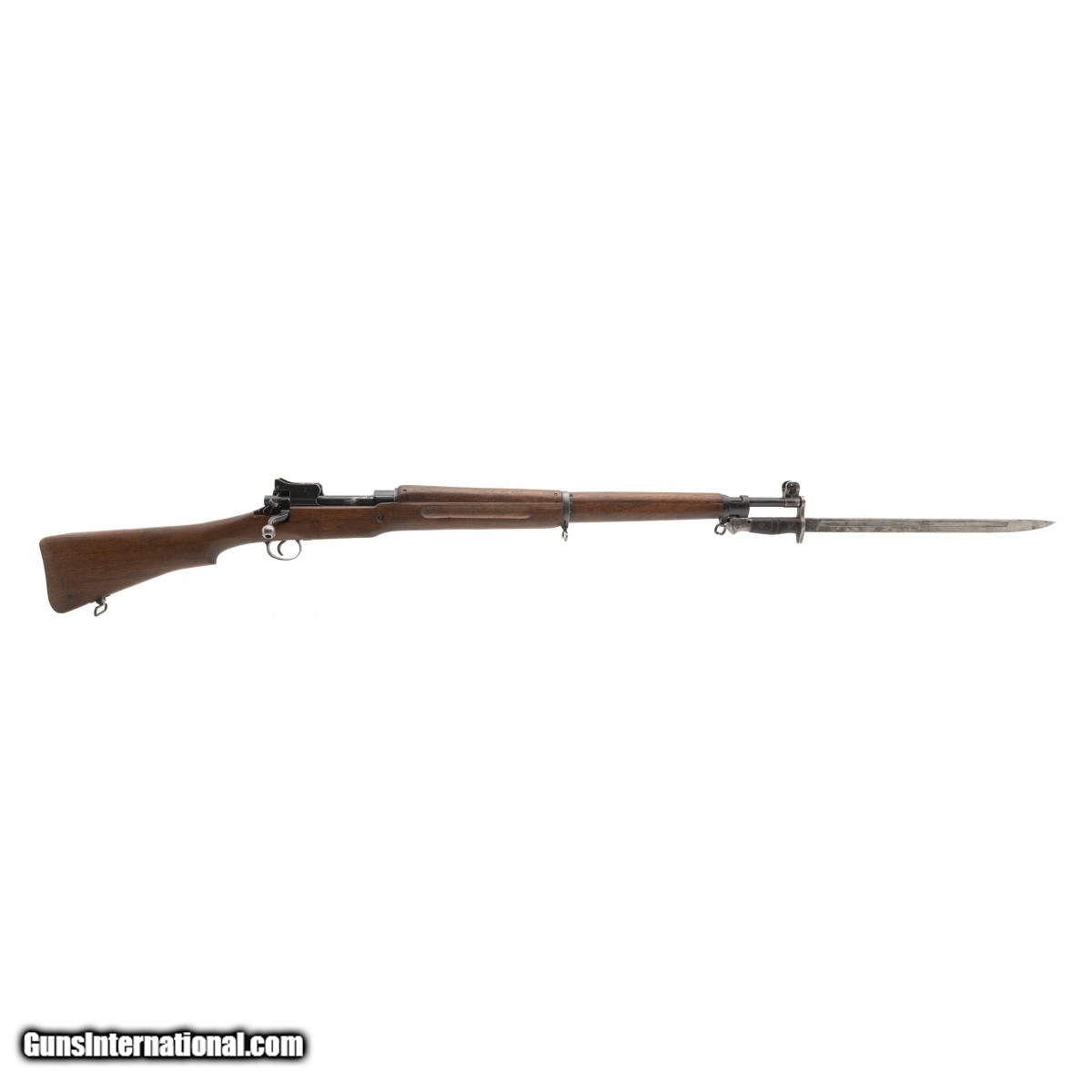 Description: " Serial No. 328291, chambered in .30-06 manufactured circa 1918 in overall good condition. Rifle has been arsenal refurbished post WWI. Bore is bright and shiny with strong rifling visible with barrel dated 5-18. Comes with a scarce 1918 stamped Remington bayonet. These bayonets were stamped with the year of production instead of model number SOLD Curio/Relic: Yes |