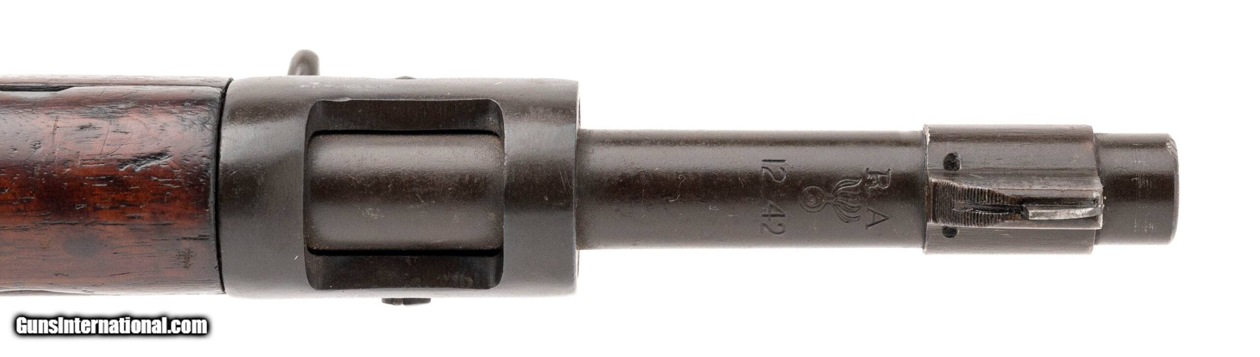 Description: "Serial No. 3342672, manufactured in 1942, .30-06 Springfield, 24" round barrel marked “R.A. / Flaming Bomb / 12-42." Rifle remains in good overall condition, with a bore showing moderate oxidation within the grooves. Stock displays light handling marks consistent with service use. Action is smooth and functions correctly. A solid and representative example of a WWII-era Remington Model 1903 rifle, reflecting the high production quality of early wartime manufacture. Curio/Relic: Yes Price: $1,195.00 Contact Seller |