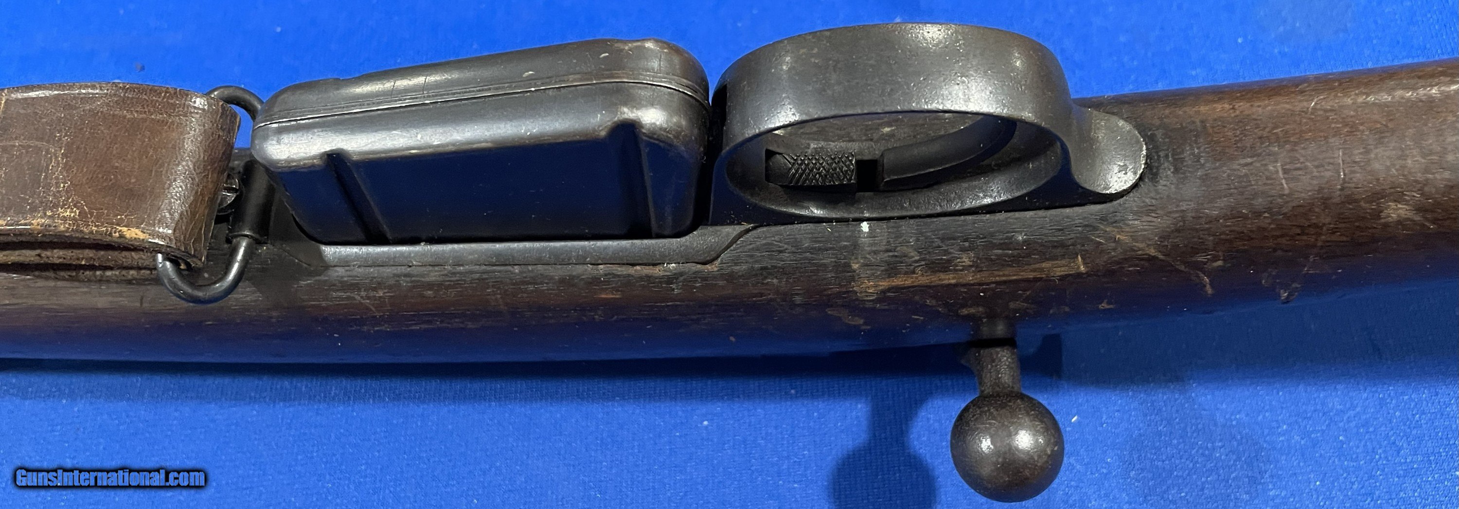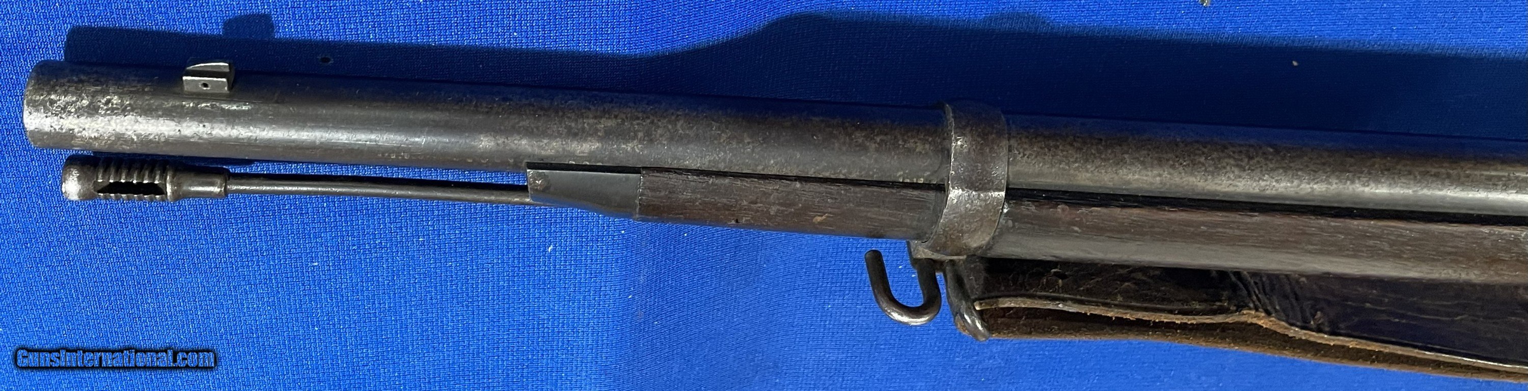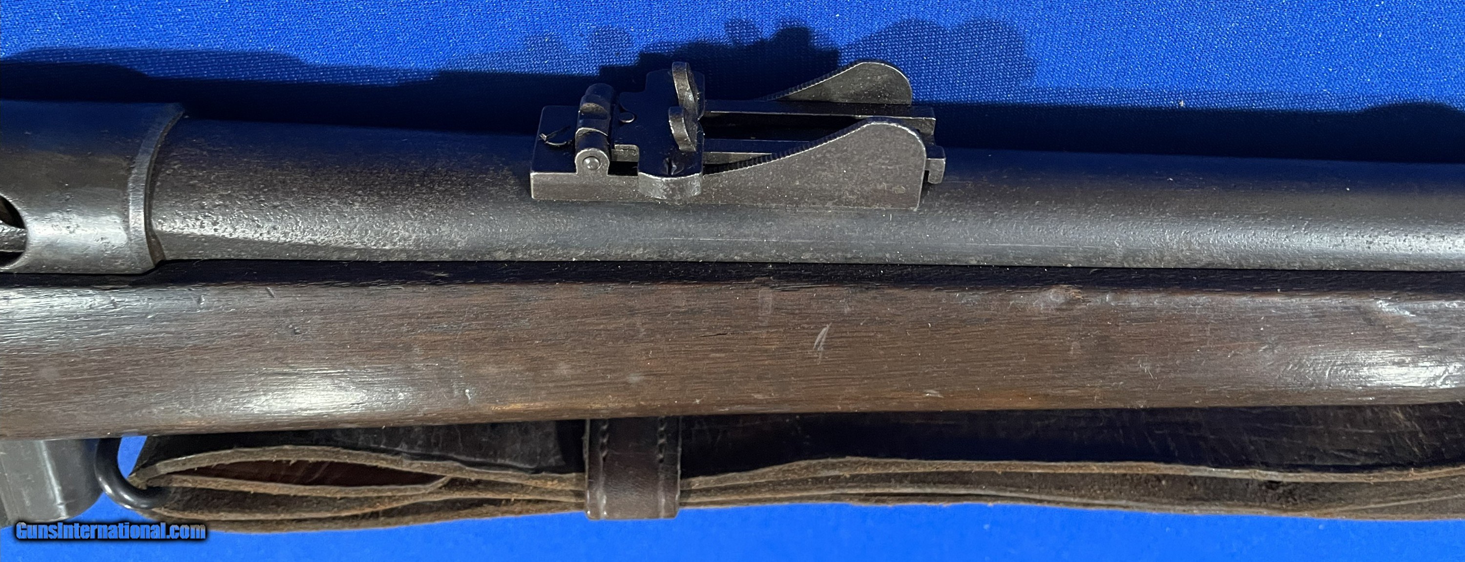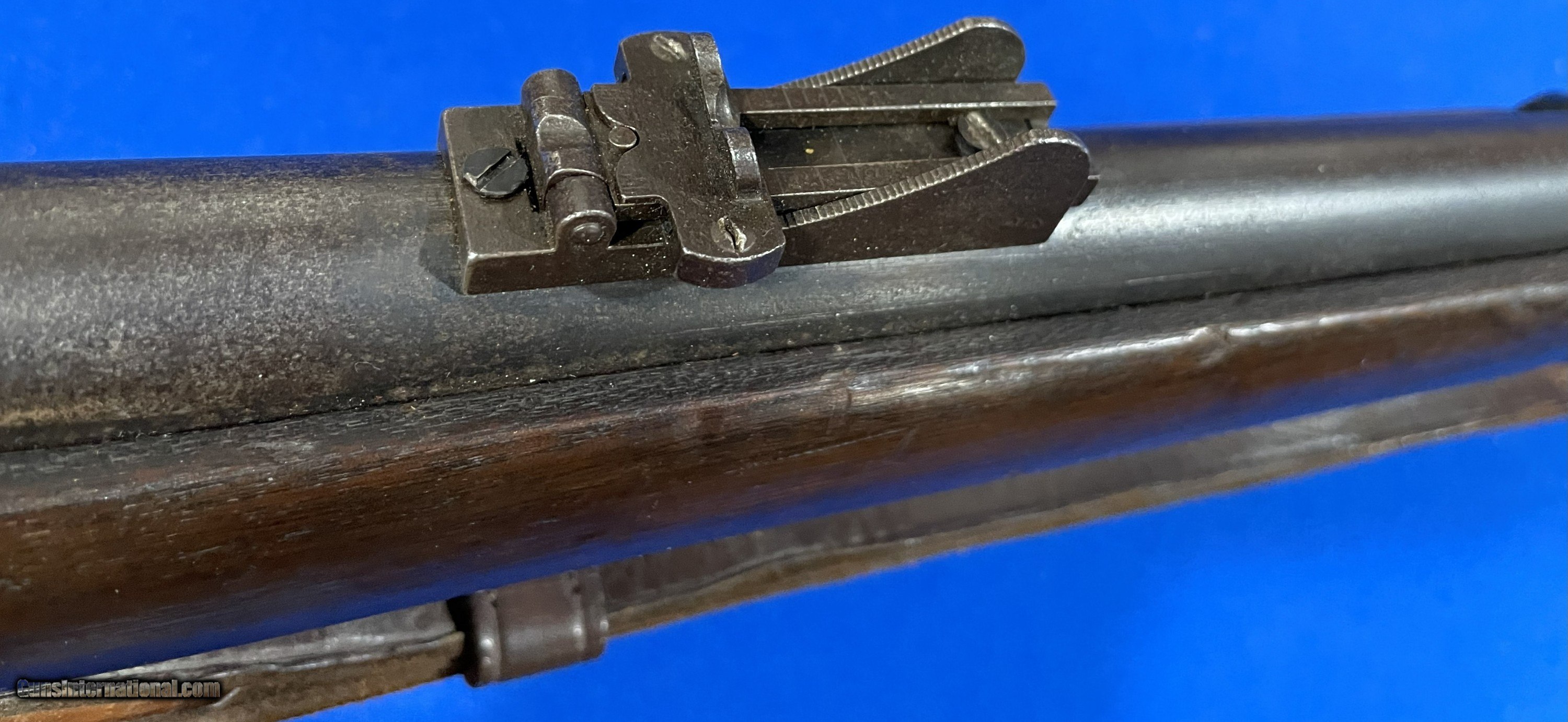 Description: REMINGTON LEE MAGAZINE NAVY RIFLE SER. #9535. METAL SURFACES MOSTLY A DEEP BROWN PATINA WITH SOME PEPPERING OF THE BOLT HANDLE, FORWARD OF THE FRAME REAR OF SIGHT AND MUZZLE (POSSIBLY FROM SALT AIR ABOARD A SHIP). BORE HAS DISTINCT RIFLING WITH PITTING CONCENTRATED AT THE END OF THE BORE. FACTORY MARKINGS AND ACCEPTANCE MARK D.C.F. WALNUT STOCK IN GOOD CONDITION, NO MAJOR ISSUES HAVING EXPECTED DINGS & MARS. ACTION APPEARS TO FUNCTION AS IT SHOULD. COMPLETE WITH PERIOD LEATHER SLING, AS PICTURED & RECENTLY FOUND IN COLLECTION. SEE LAST PICTURE OF AN OLD TAG THAT WAS ATTACHED TO IT. QUESTIONS JUST ASK ! SEE ALL ESTATE ANTIQUES LISTINGS FOR MORE SCARCE ITEMS. $60.00 S&H DIRECT TO YOU ANYWHERE IN THE U.S. THAT'S OK TO OWN. NO FFL LICENSE NEEDED. NO SALES TO NEW YORK STATE ! Antique: Yes Rifle Caliber: .45-70 Government Manufacturer: REMINGTON Model: 1879 Serial Number: 9535 Barrel Length: 32 Condition: VERY GOOD/GOOD Metal Condition: AGED Wood Condition: AS PICTURED Bore Condition: DISTINCT RIFLING Barrel Type: ROUND Action: WORKS GOOD Stock: WALMUT Butt Pad: U.S. MARKED Finish: AGED Sights: ORIGINAL Price: $2,500.00 Buy Now Contact Seller |