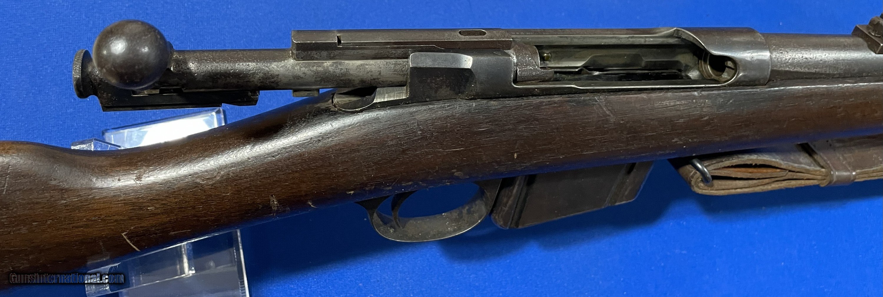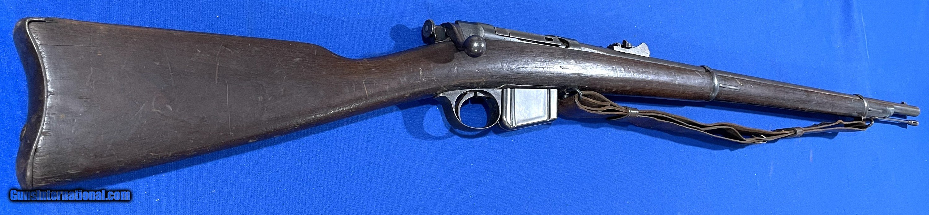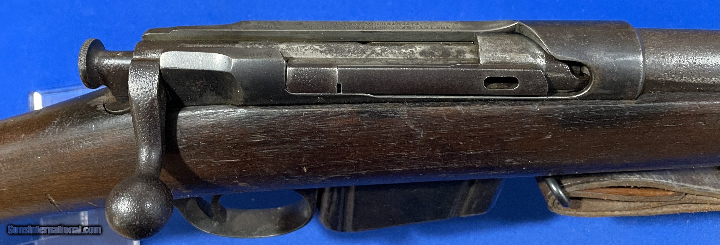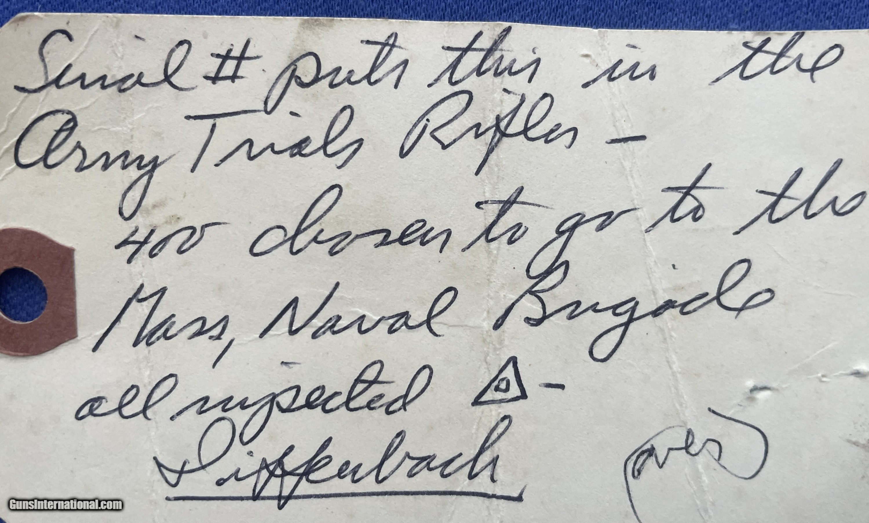 Description: REMINGTON LEE MAGAZINE NAVY RIFLE SER. #9535. METAL SURFACES MOSTLY A DEEP BROWN PATINA WITH SOME PEPPERING OF THE BOLT HANDLE, FORWARD OF THE FRAME REAR OF SIGHT AND MUZZLE (POSSIBLY FROM SALT AIR ABOARD A SHIP). BORE HAS DISTINCT RIFLING WITH PITTING CONCENTRATED AT THE END OF THE BORE. FACTORY MARKINGS AND ACCEPTANCE MARK D.C.F. WALNUT STOCK IN GOOD CONDITION, NO MAJOR ISSUES HAVING EXPECTED DINGS & MARS. ACTION APPEARS TO FUNCTION AS IT SHOULD. COMPLETE WITH PERIOD LEATHER SLING, AS PICTURED & RECENTLY FOUND IN COLLECTION. SEE LAST PICTURE OF AN OLD TAG THAT WAS ATTACHED TO IT. QUESTIONS JUST ASK ! SEE ALL ESTATE ANTIQUES LISTINGS FOR MORE SCARCE ITEMS. $60.00 S&H DIRECT TO YOU ANYWHERE IN THE U.S. THAT'S OK TO OWN. NO FFL LICENSE NEEDED. NO SALES TO NEW YORK STATE ! Antique: Yes Rifle Caliber: .45-70 Government Manufacturer: REMINGTON Model: 1879 Serial Number: 9535 Barrel Length: 32 Condition: VERY GOOD/GOOD Metal Condition: AGED Wood Condition: AS PICTURED Bore Condition: DISTINCT RIFLING Barrel Type: ROUND Action: WORKS GOOD Stock: WALMUT Butt Pad: U.S. MARKED Finish: AGED Sights: ORIGINAL Price: $2,500.00 Buy Now Contact Seller |