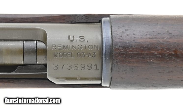 Description: Remington 03-A3 .30-06 caliber rifle. WWII U.S. military rifle dated 1943. Bore is mint. Stock has several cartouches. Very good plus overall condition.