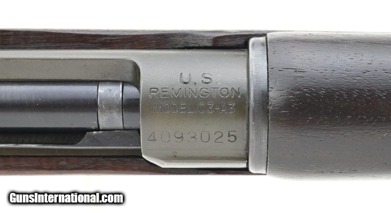 Description: Remington 03-A3 .30-06 caliber rifle. WWII U.S. military rifle made in 1943. Bore is mint. Stock has several cartouches. A desirable military rifle.