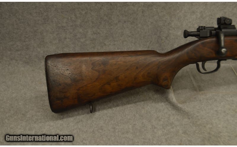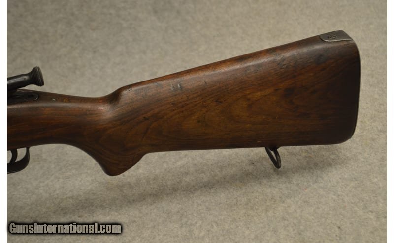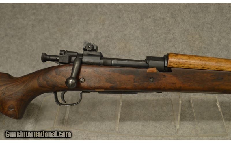 Description: For your consideration is a Remington 03-A3 chambered in .30-06 Springfield. This rifle features a 24" barrel with an about good bore showing light oxidation throughout with evident rifling and an about 2" counterbored muzzle. The metal surfaces retain about 97% arsenal reapplied Parkerized finish with light wear on high edges and contact points, some light handling marks, and spots of previous light pitting beneath the finish. The pistol grip walnut stock and handguard are in about very good condition with three splice repairs on the left side of the forend, a patch repaired crack at the rear of the receiver, small patch repairs on the right side of the bottom metal and receiver, and scattered light dings and handling marks. The receiver markings are crisp, the barrel markings partially obscured by pitting but still showing an import mark on the underside. .30-06 Springfield SOLD Curio/Relic: Yes Metal Condition: Good Wood Condition: Very good Bore Condition: Good Barrels: 24 inch Weight: 8lb 11oz Item Location: Berlin |