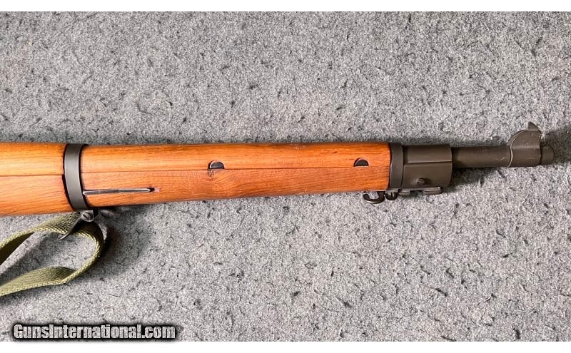 Description: This 1943 right hand bolt action military rifle is a Remington Model 03-A3 chambered in .30-06 Springfield. It has a 24-inch barrel, a blade front fixed sight, an adjustable military style aperture rear sight, and a smooth hardwood stock. The forearm is a smooth grip, two-piece hardwood. The barrel is arsenal stamped with an R A flaming bomb, and 4-43. The receiver is roll stamped "U.S./REMINGTON/ MODEL 03-A3/3710656". The reverse of the barrel is stamped with a P. The underside of the bolt is marked with an "R." The Model 03-A3 was produced during WWII to arm the rapidly expanding armed forces. It has subtle variations from the original Model 03 to reduce costs and increase production. The metal finish is in exceptionally good to excellent condition. Likewise, the wood is in excellent condition with no observable handling wear, chips, scratches or cracks. It comes with an MRT drab green adjustable sling. .30-06 Springfield SOLD Curio/Relic: Yes Metal Condition: Metal finish is in exceptionally good to excellent condition Wood Condition: "The wood is in excellent condition with no observable handling wear, chips, scratches or cracks Barrels: 24" barrel Triggers: Smooth curved trigger Stock Dimensions: "13"" LOP, overall length 43½ inches Butt Pad: Steel butt plate with trap door for cleaning kit (no kit included) Weight: 8lbs 8 oz Sights: "Blade front fixed sight, adjustable military style aperture rear sight Item Location: Wichita, KS |