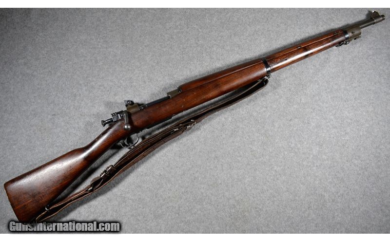 Description: U.S. World War II Remington Model 03A3 Bolt Action Rifle. This is an excellent example of a WWII production rifle as manufactured by the Remington Arms Company. The top of the receiver is marked "U.S./REMINGTON/MODEL 03-A3" over the serial number and the barrel is marked "RA/flaming bomb/4-43". The rifle has the correct barrel bands, trigger guard and follower. It has the military style rear sight and high blade front sight with a cover that is marked with "flaming bomb/U.S." on the left side. The receiver and barrel are green parkerized while the remaining metal parts are blue. The stock and handguard are both walnut with the left side marked with a "RA Crossed Cannon" cartouche and boxed "FJA" proofs with various sub inspector proofs in front of the trigger guard. .30-06 Springfield SOLD Curio/Relic: Yes Metal Condition: Very Good Wood Condition: Very Good Bore Condition: Very Good Barrels: 24 inch Weight: 8 LBS Item Location: Lacey, WA |