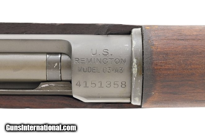 Description: Remington 03A3 .30-06 caliber rifle. US WWI military rifle. Barrel is dated 1943. Bore is excellent. Very good overall condition.